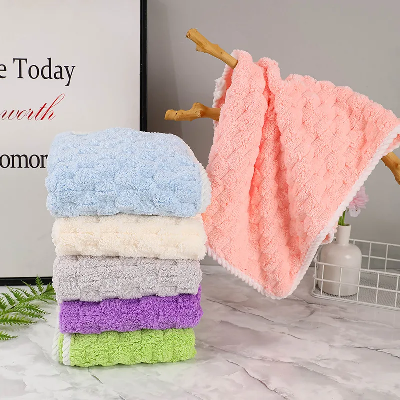 1 pcs Soft Thickened Coral Fleece Face Towel Water Absorption and Quick Drying Solid Color Hand Towel For Bathroom
