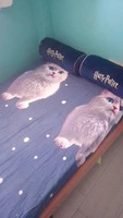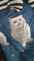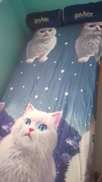 1 piece of blue eyed white cat patterned matte bedsheet, bedroom printed bedspread, bedding (excluding pillowcases)