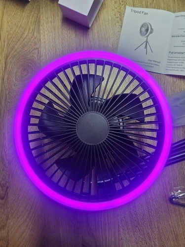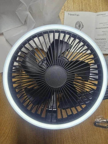 well packed, no damage was found, works very well, brightness of lighting and wind speed can be adjusted. The battery capacity is not printed on the label, hope it matches with the description.