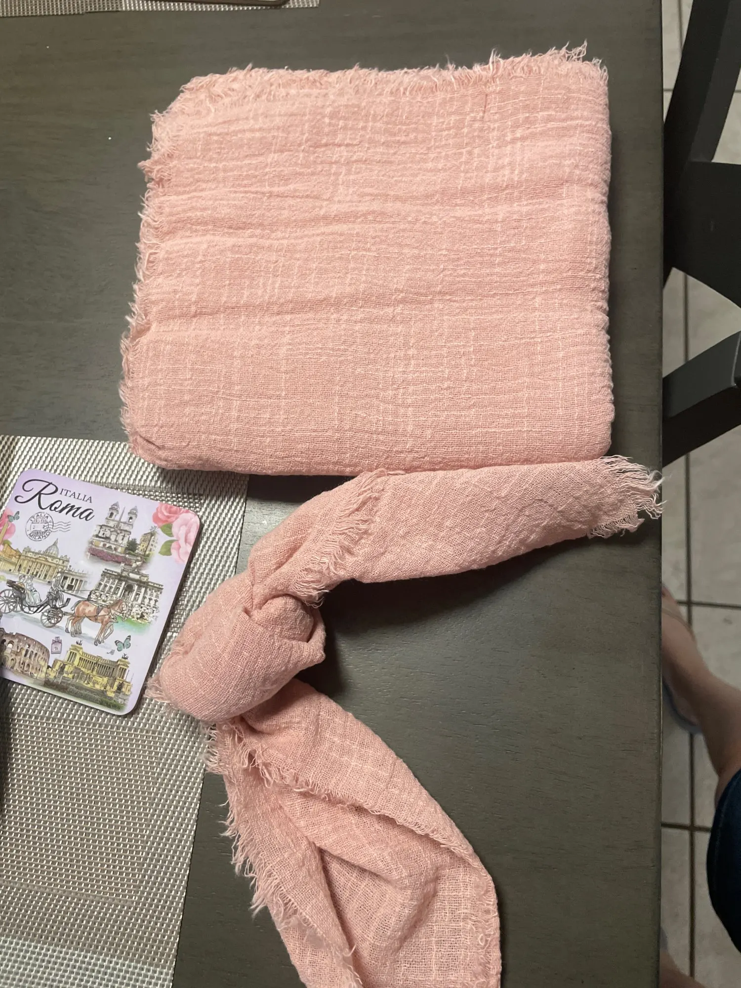 Beautiful color, in photo it looks more peach but it is like a very cute ice cream pink, the only but it would be the thin fabric but they are still pretty, good size✨