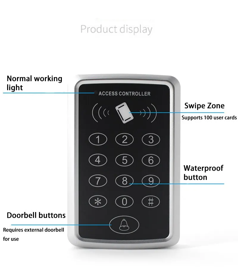125KHz RFID Access Control Keypad EM Card Reader Support 1000 Users Door Access Control System Door Lock Opener Keyboard System