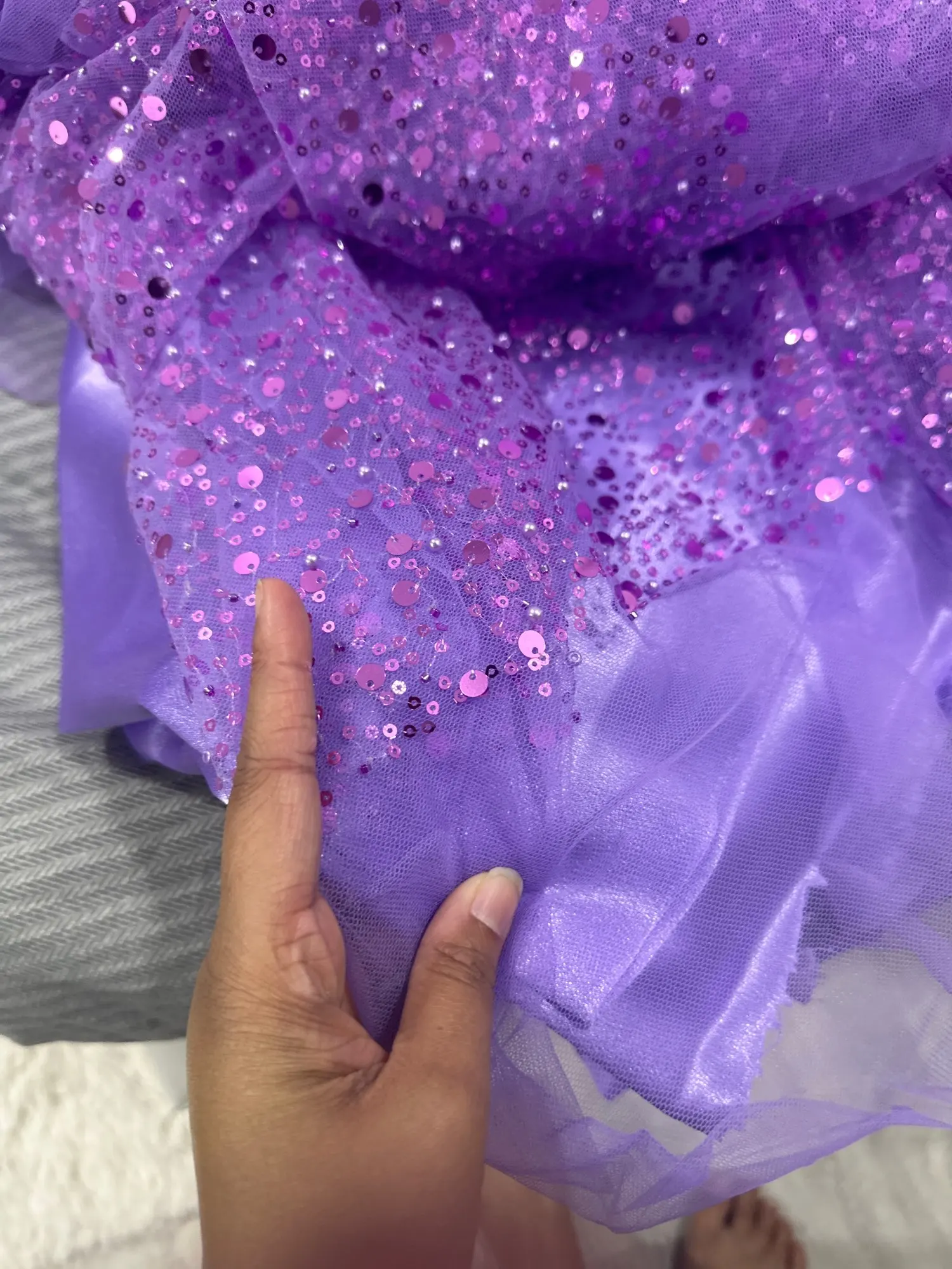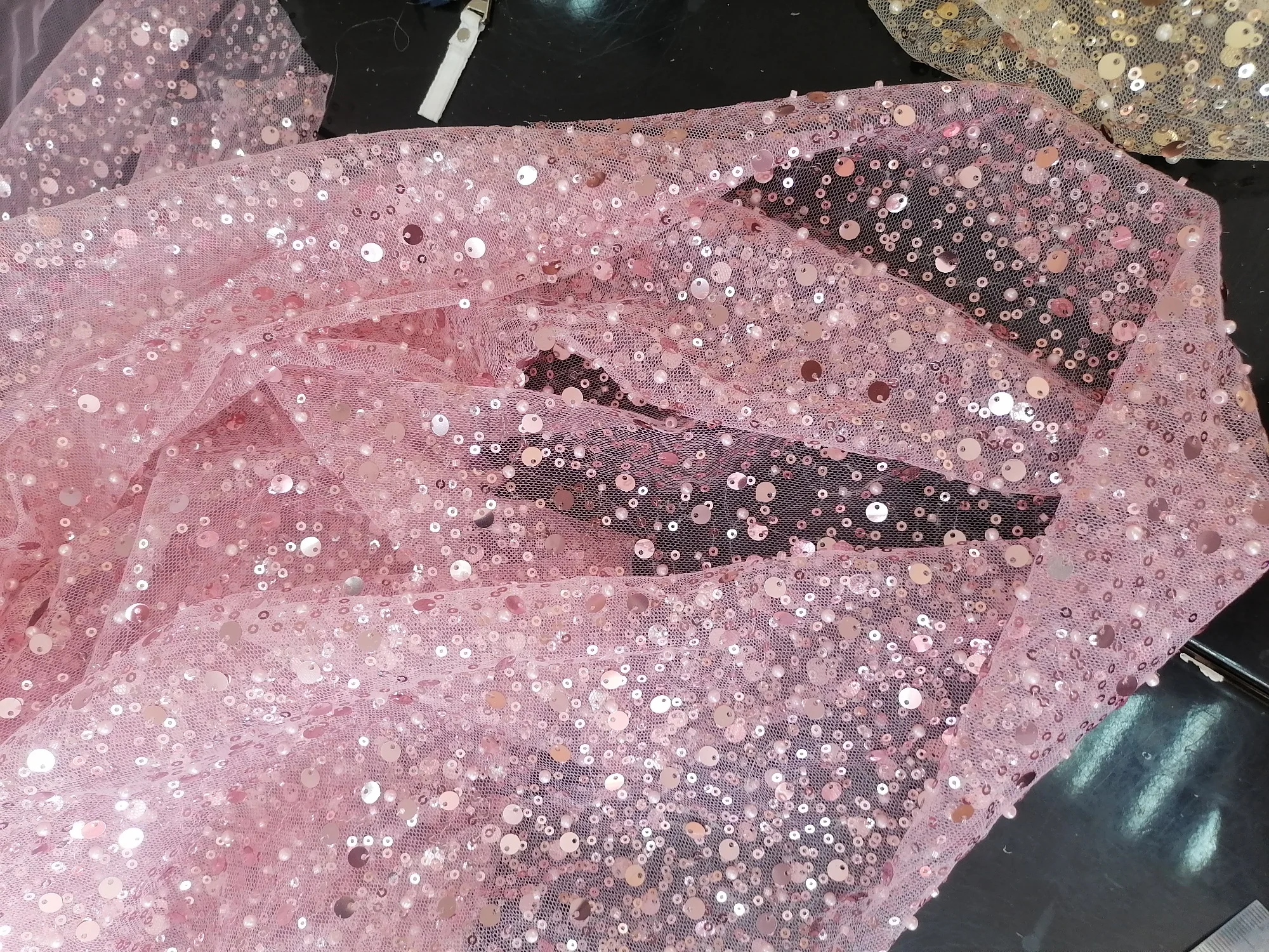 Pink one is beautiful, but the white one’s sequins are transparent, so you bearly see them.