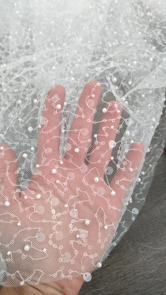 16 Colors beauty wedding dress beading fashion dress lace fabric with pearls 130cm width bridal lace fabric sell by yard