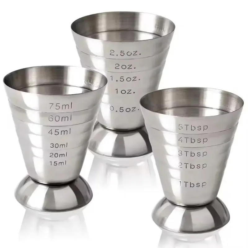 1pc 75ML Stainless Steel Measuring Cup Cocktail Tools Mixing Drink Accessories Three Scale Wine Measuring Cups For Home Party