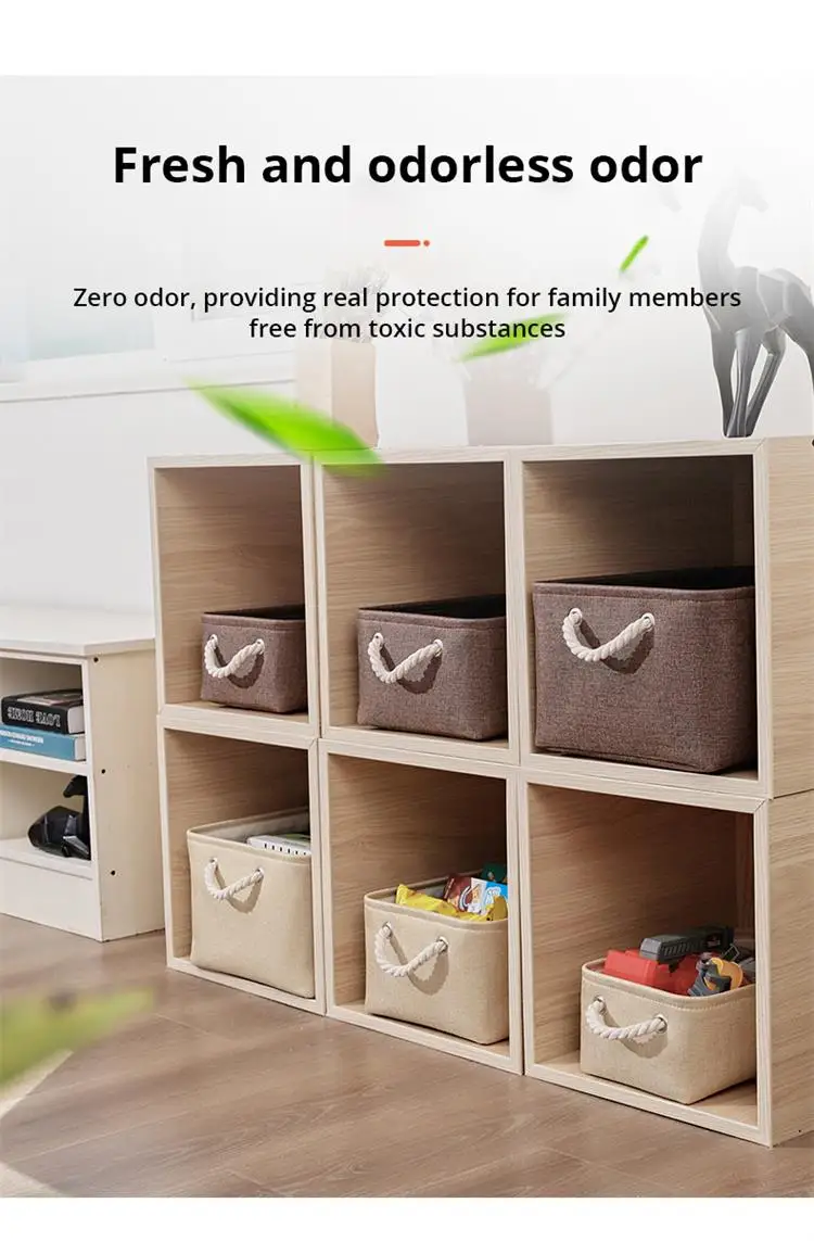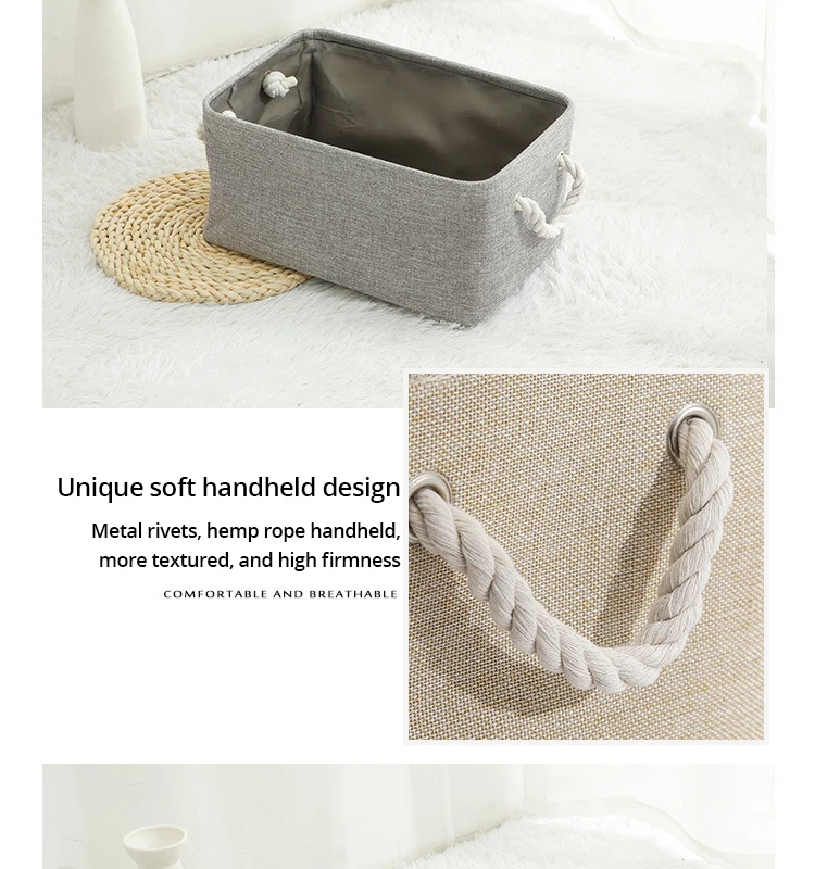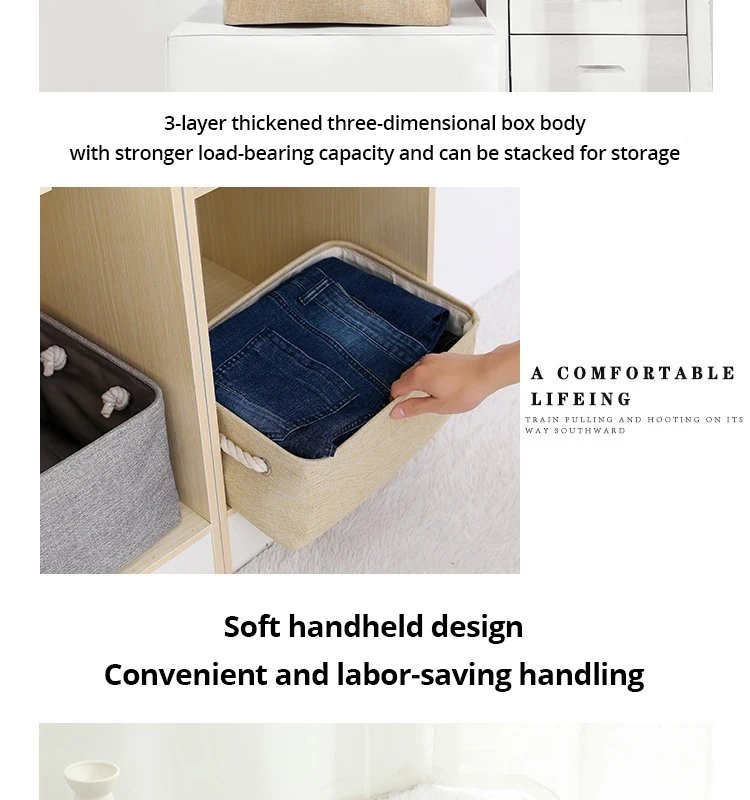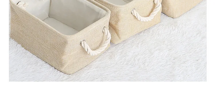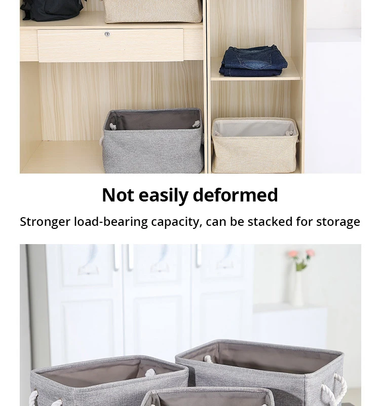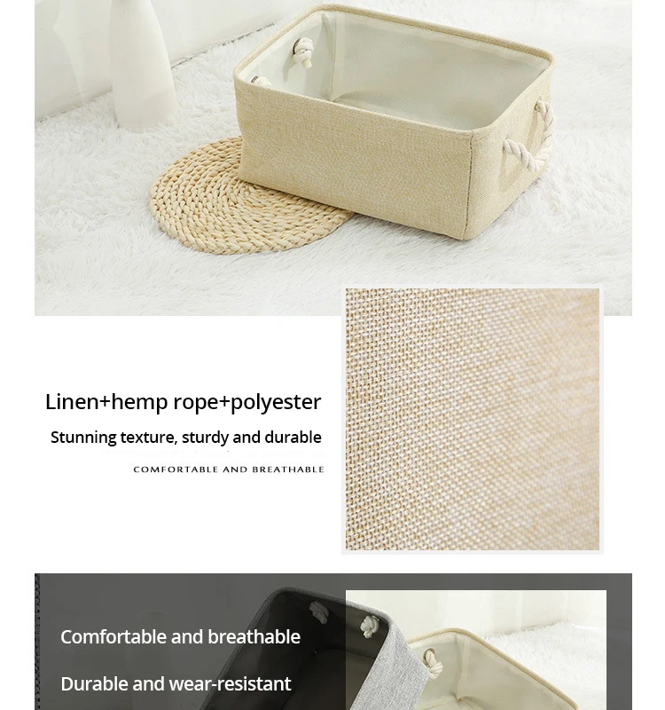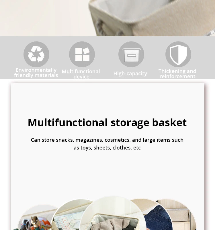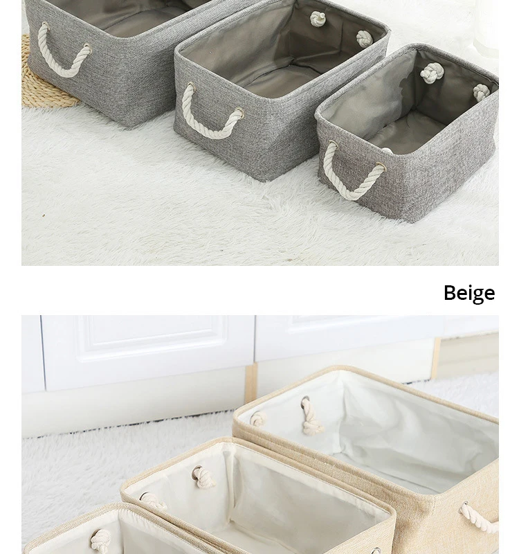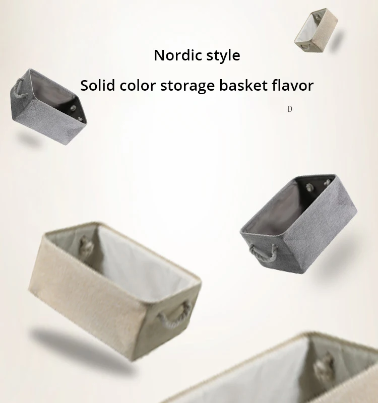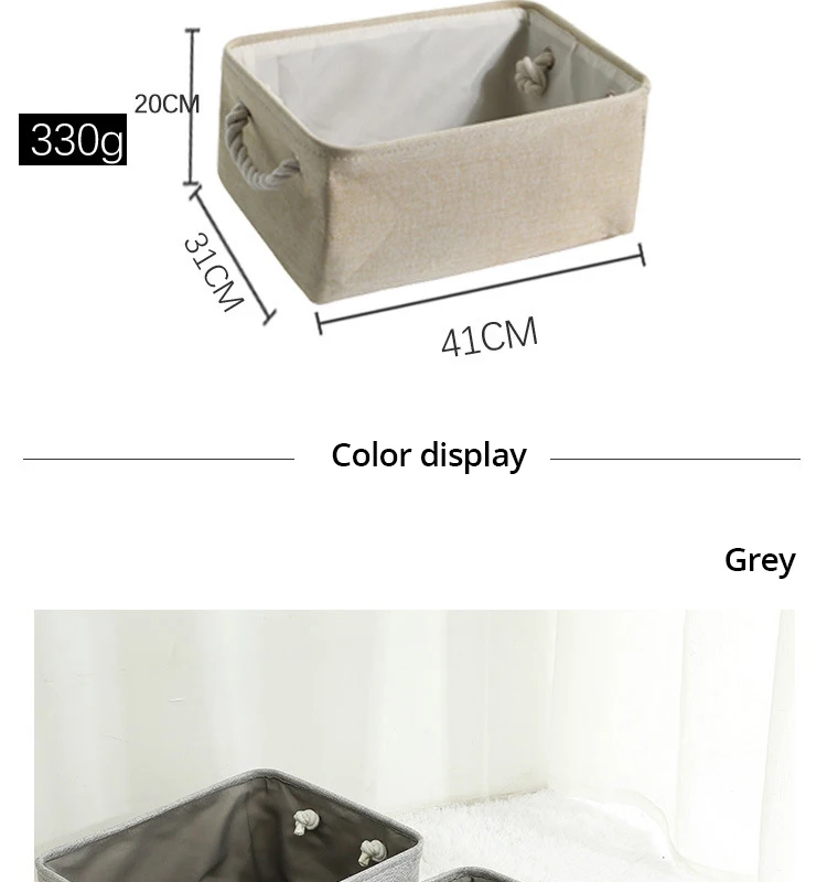 1Pc Beige/Grey Folding Storage Basket Linen Storage Fabric Wardrobe Office Bedroom Closet Toys Laundry Basket With Handle