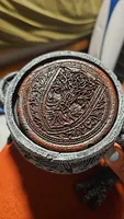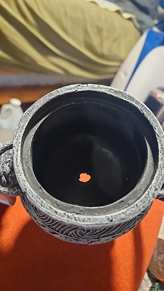 Great price for what it is. Plastic material. Removable lid, and it has a whole all the way through.
