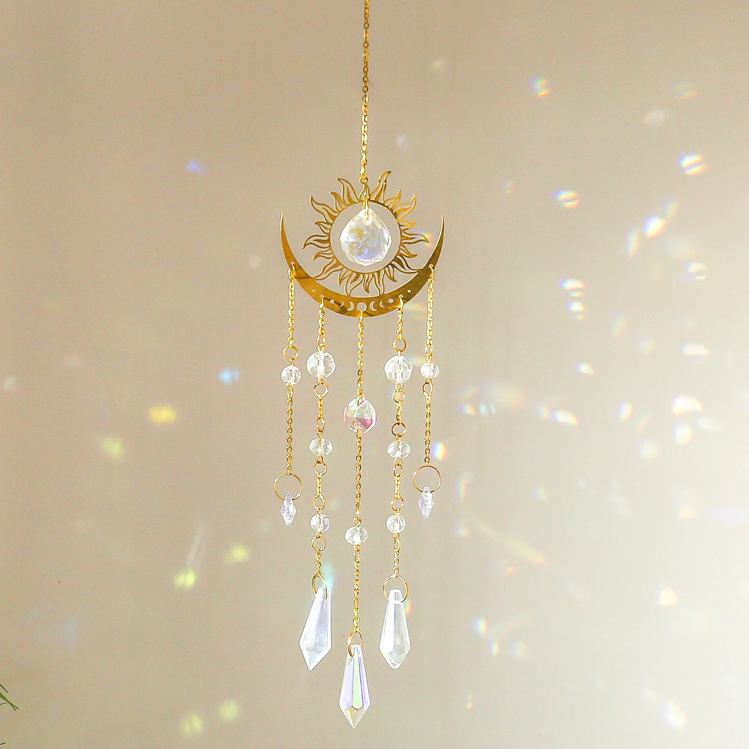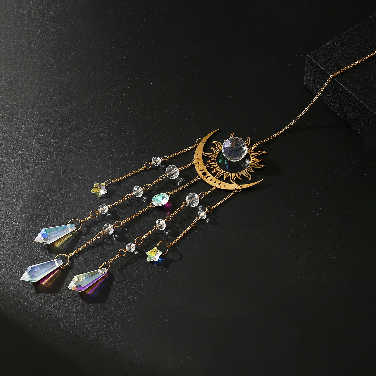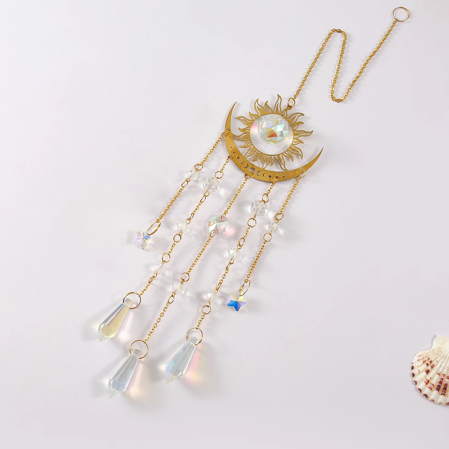 1pc gold flame moon crystal pendant sunlight catcher outdoor garden ab colourful hanging decorations hanging ornaments
