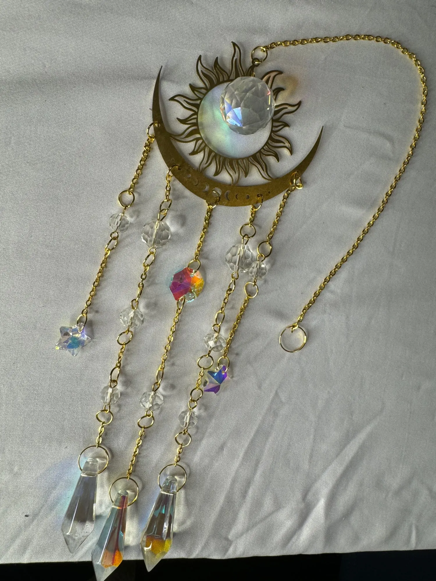 1pc gold flame moon crystal pendant sunlight catcher outdoor garden ab colourful hanging decorations hanging ornaments
