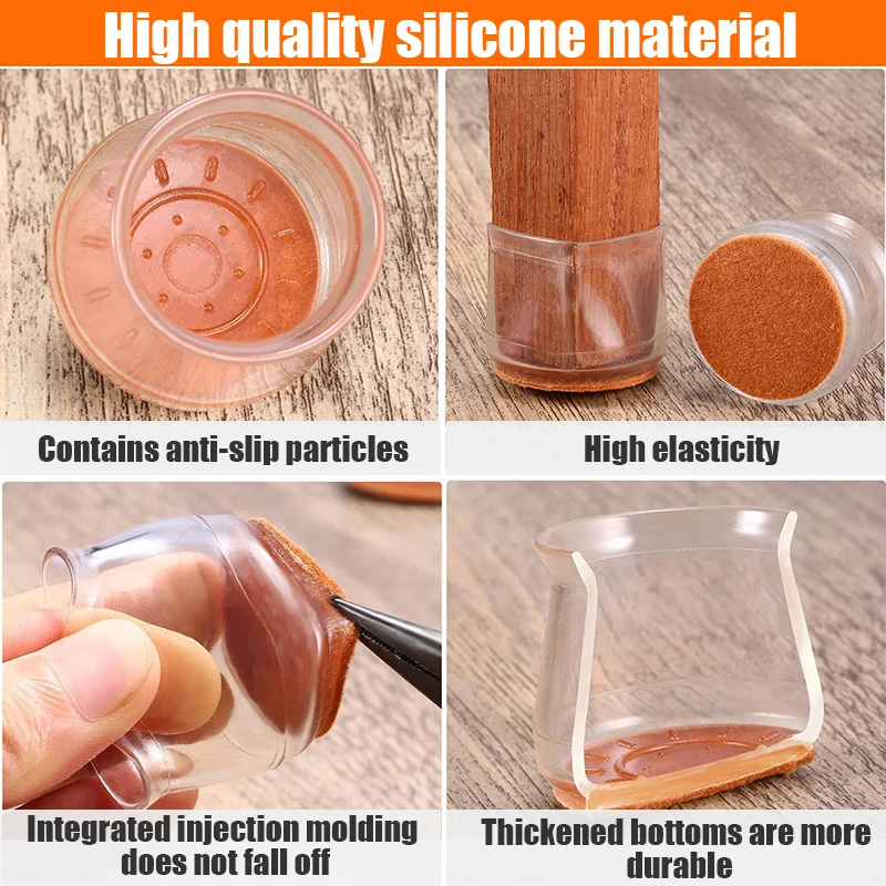 【Upgrade New Design】: The Furniture Leg Floor Protectors is made of thickening silicone and a 360°full felt pad bottom wrapped, which helps the felt bottom be able to touch the floor at any angle, preventing the silicone touch and scraping the floor, and it will not easy to fell off any more compared to the old style protectors.