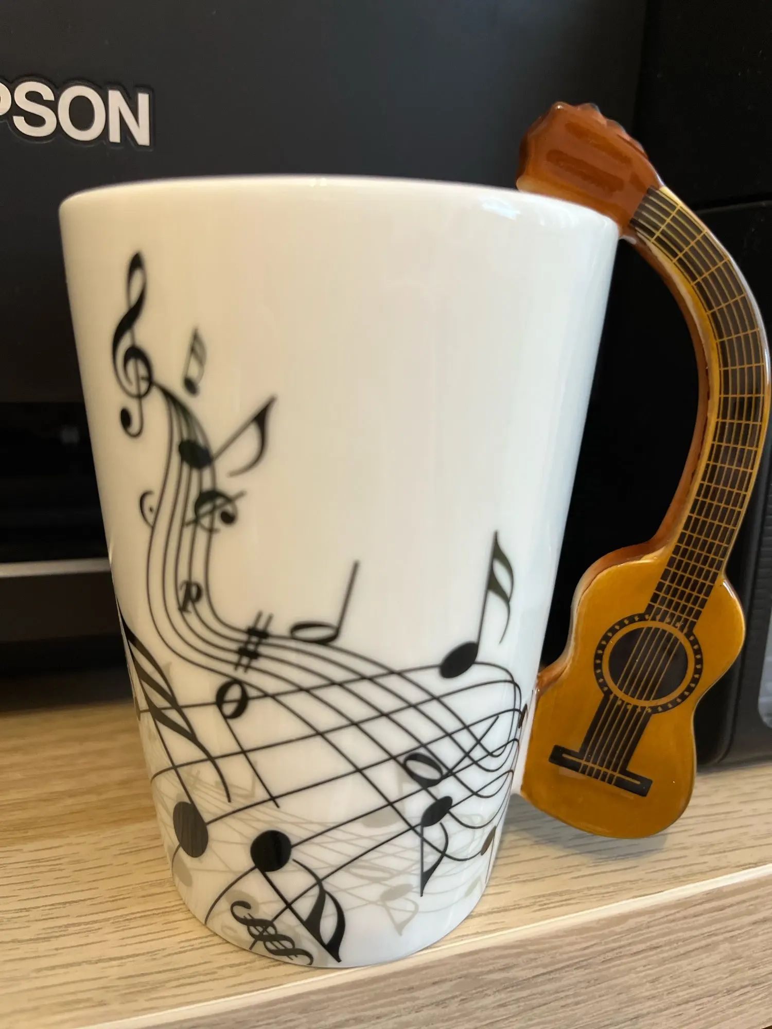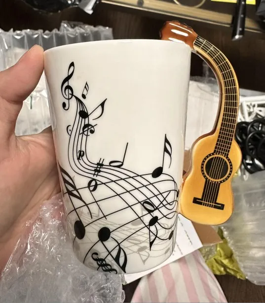Comes amazingly packaged. A high-quality cup with a special design down to the smallest detail. The design of the musical instrument as the handle of the cup is original and simply beautiful. The decorations of the musical notes are charming. really love