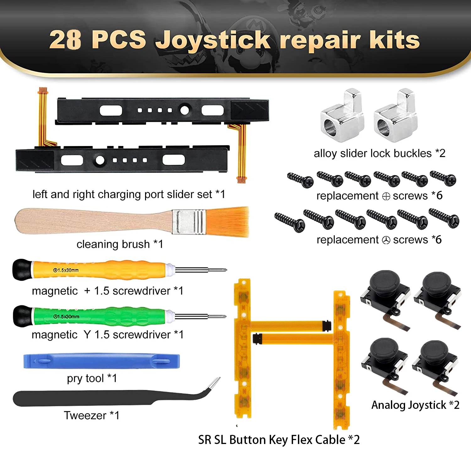 28 in 1 NS Switch /Switch Lite /Oled Joycon Joystick Replacement Repair Kit Left & Right Slider Metal Buckles For Nintendo Switch Controller Accessories
