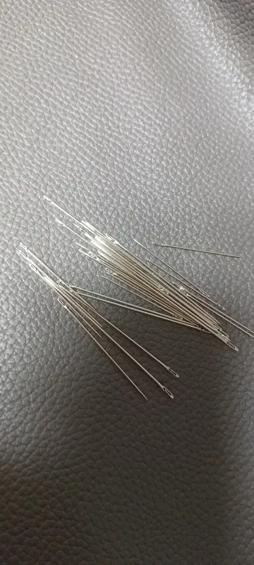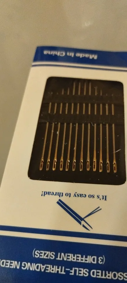 Quality sewing needles with a slot to easily insert the thread plus the ear in color, very comfortable
