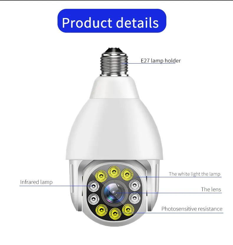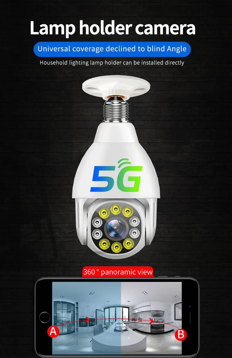 360° 5G Wifi Panoramic Bulb Camera 10pc Infrared Lamps Night Vision Motion Detect 720P HD Surveillance Mini Security CCTV IP Cam