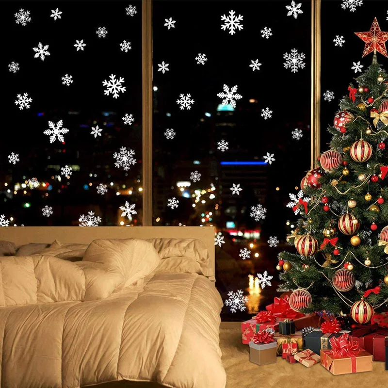 36pcs/lot White Snowflake Christmas Wall Stickers Glass Window Sticker Christmas Decorations for Home New Year Gift Navidad 2024