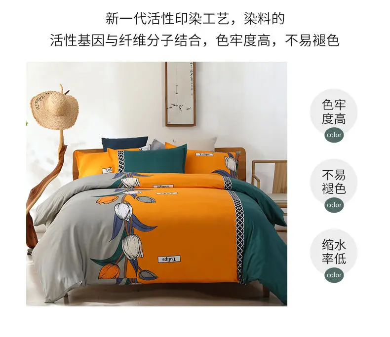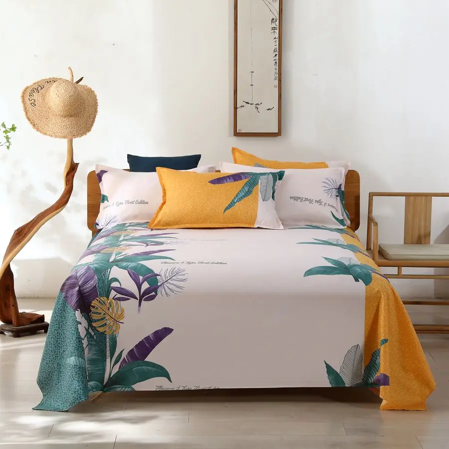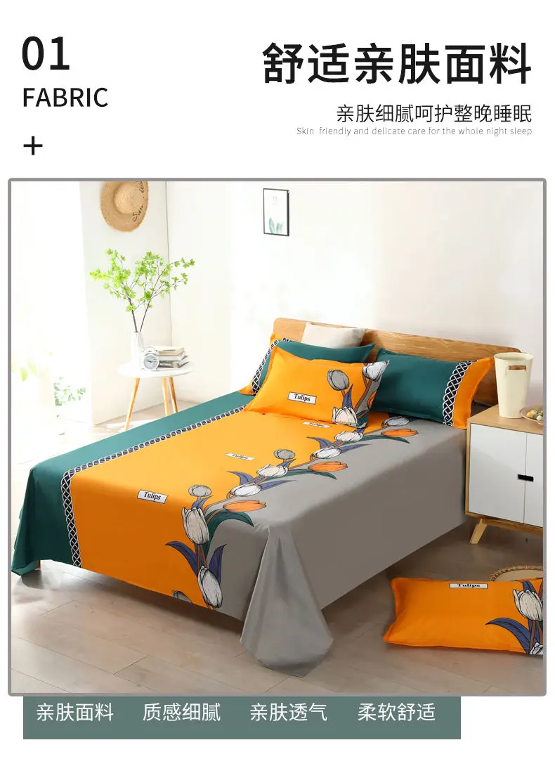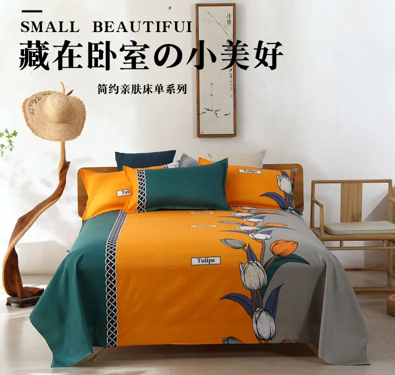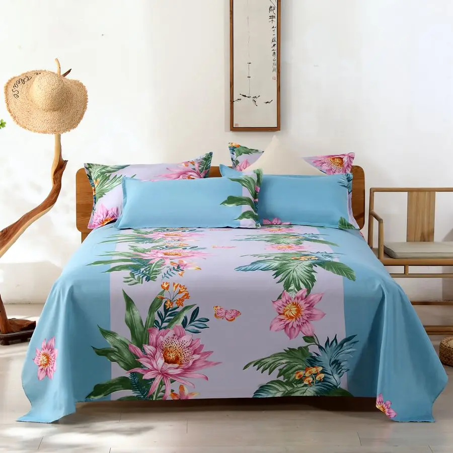 3pcs/Set Home Textile Bed Sheet Set with Pillowcases Cotton Material Lovers Home Room Bedding Flat Sheet Bed Sheet Set