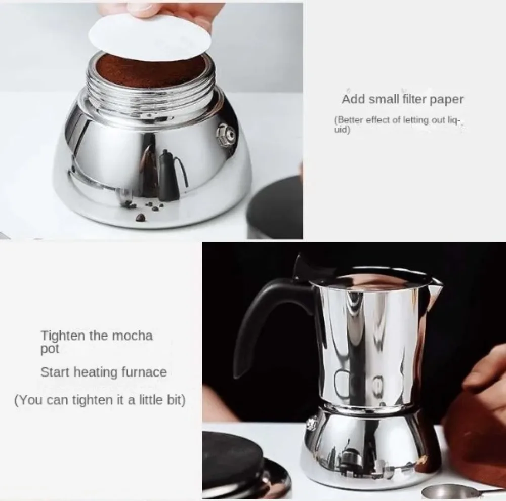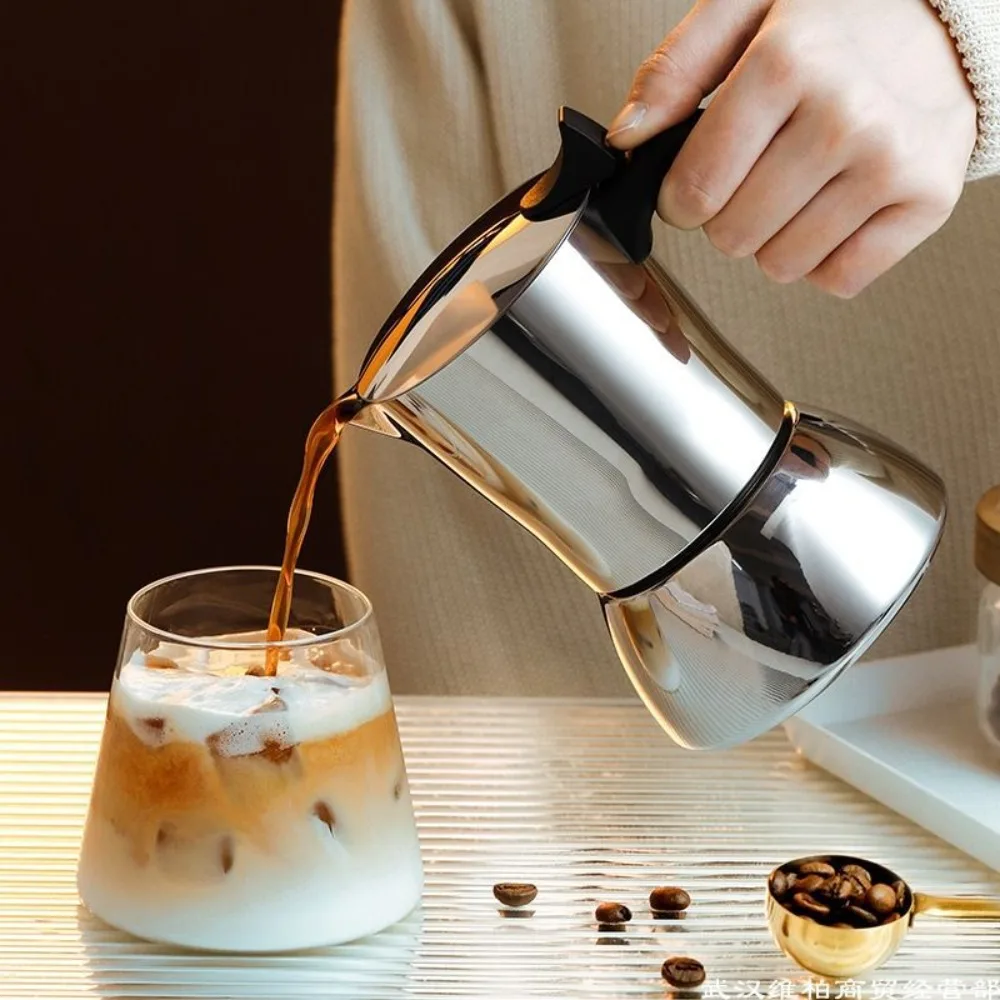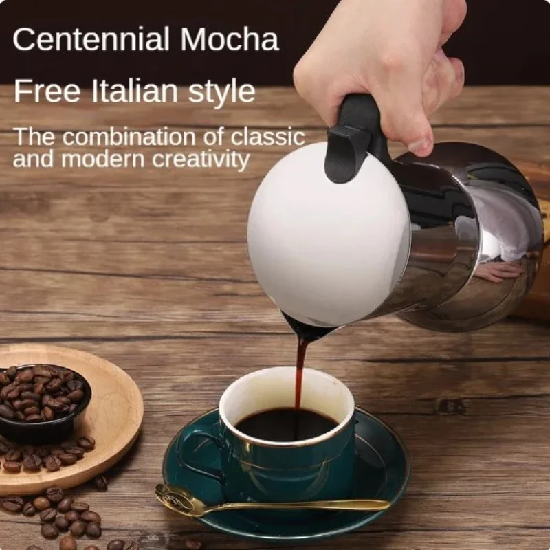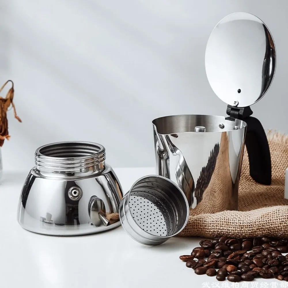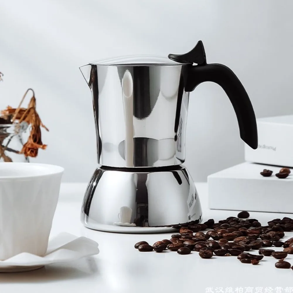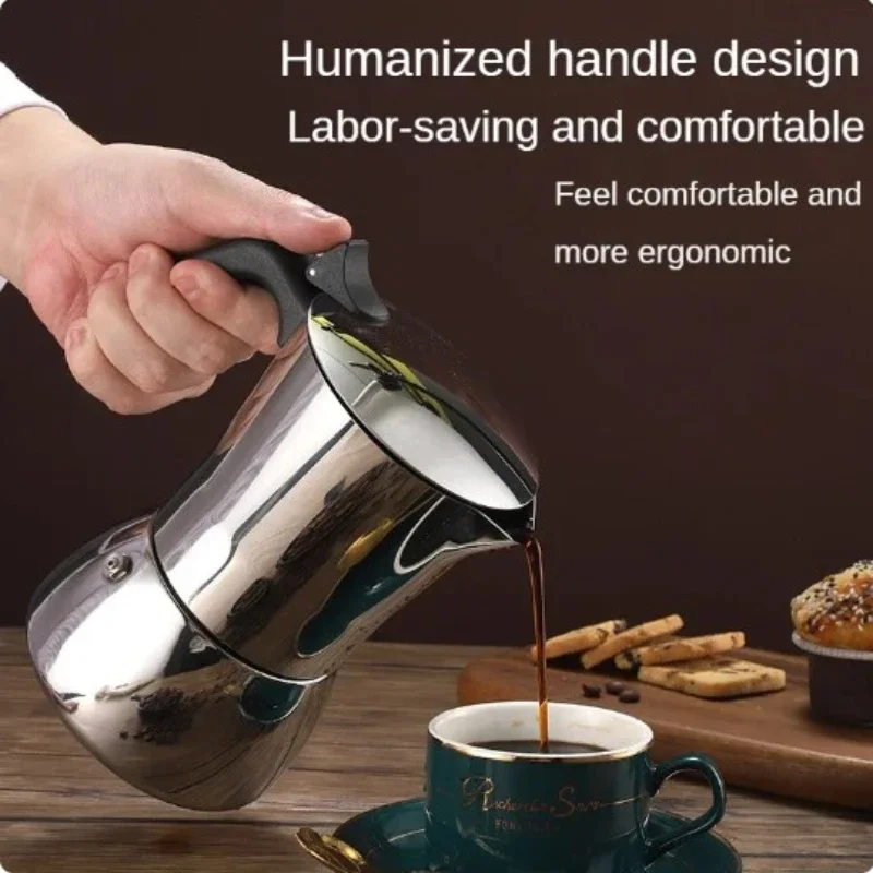 4-10 Cups Mocha Pot Stainless Steels Italian Coffee Maker Extraction Coffee Pot Espresso Utensils for Induction Cooker Gas Heat