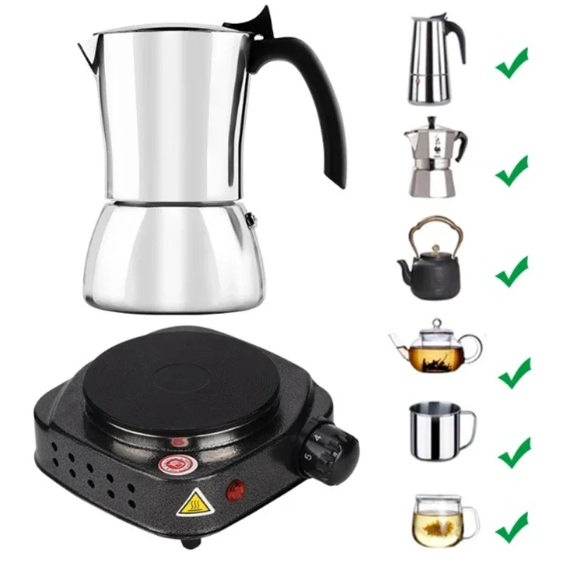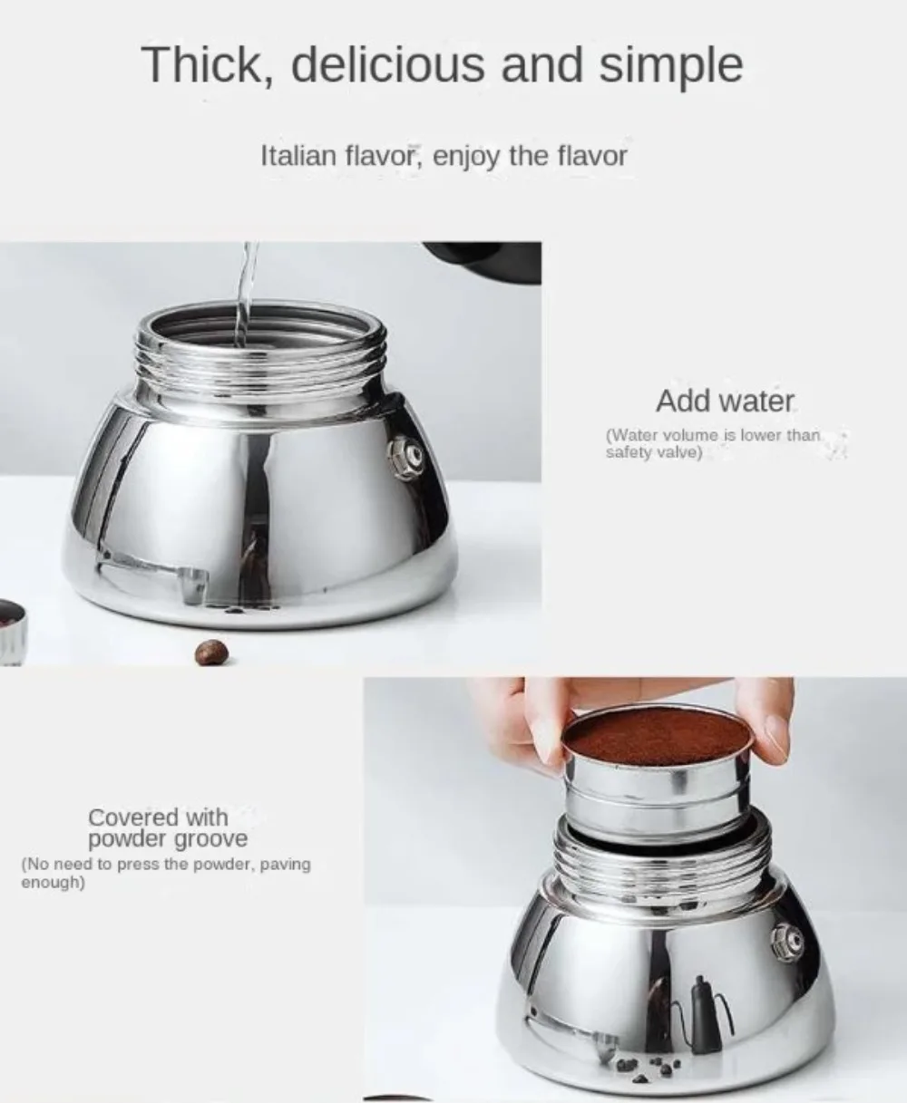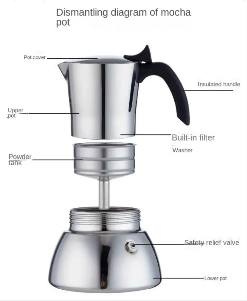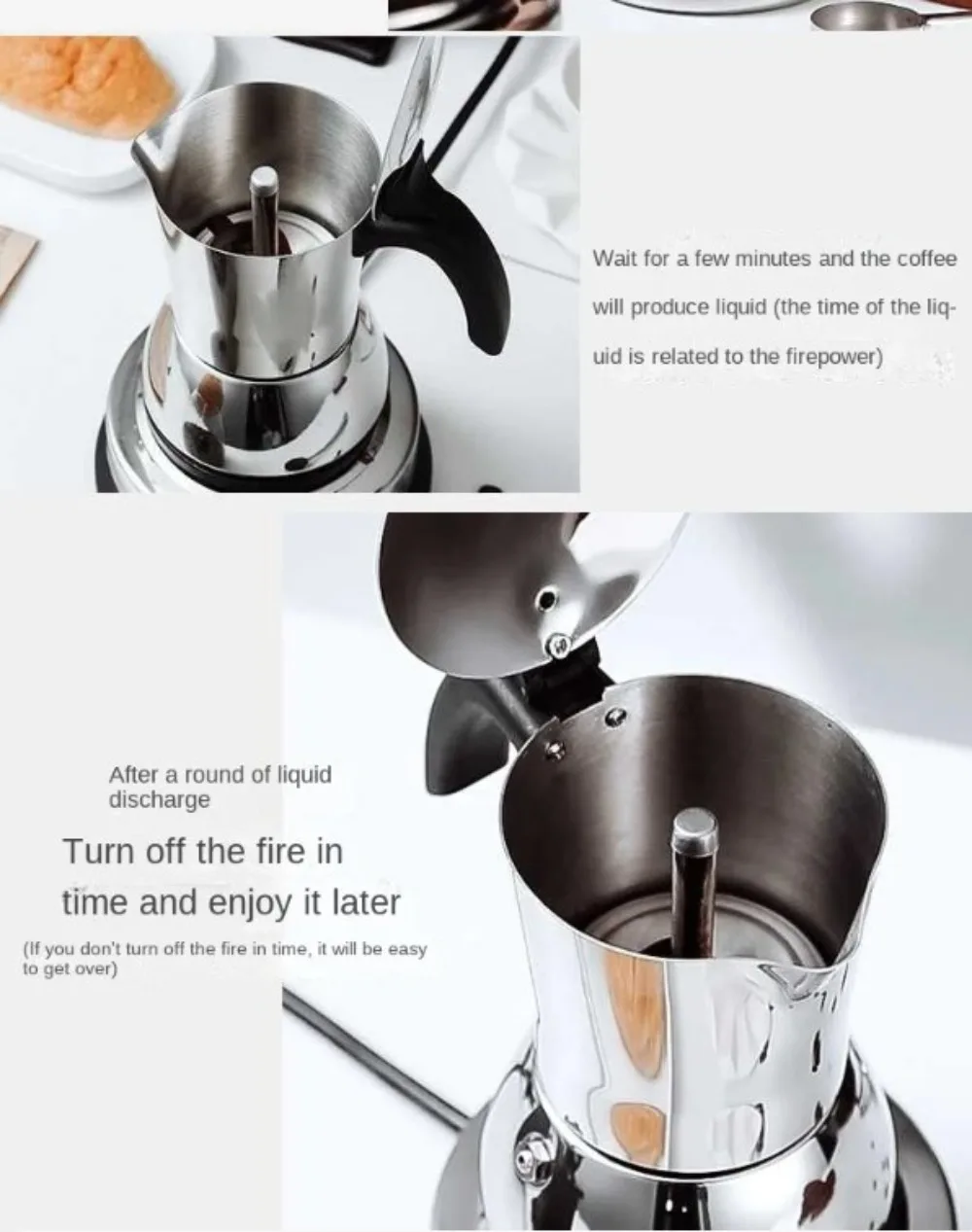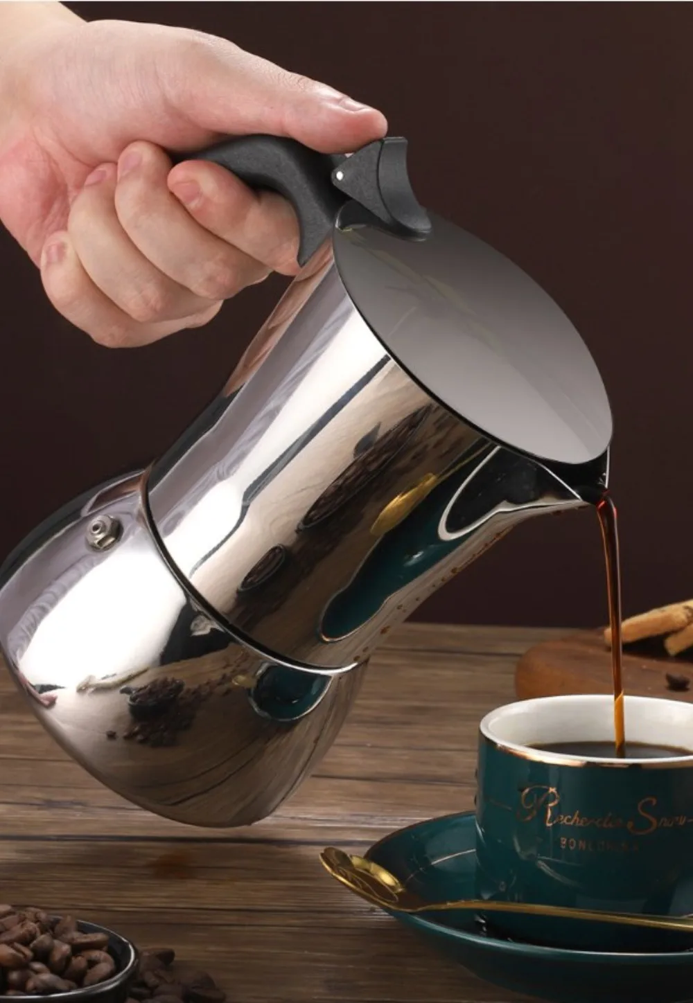 4-10 Cups Mocha Pot Stainless Steels Italian Coffee Maker Extraction Coffee Pot Espresso Utensils for Induction Cooker Gas Heat