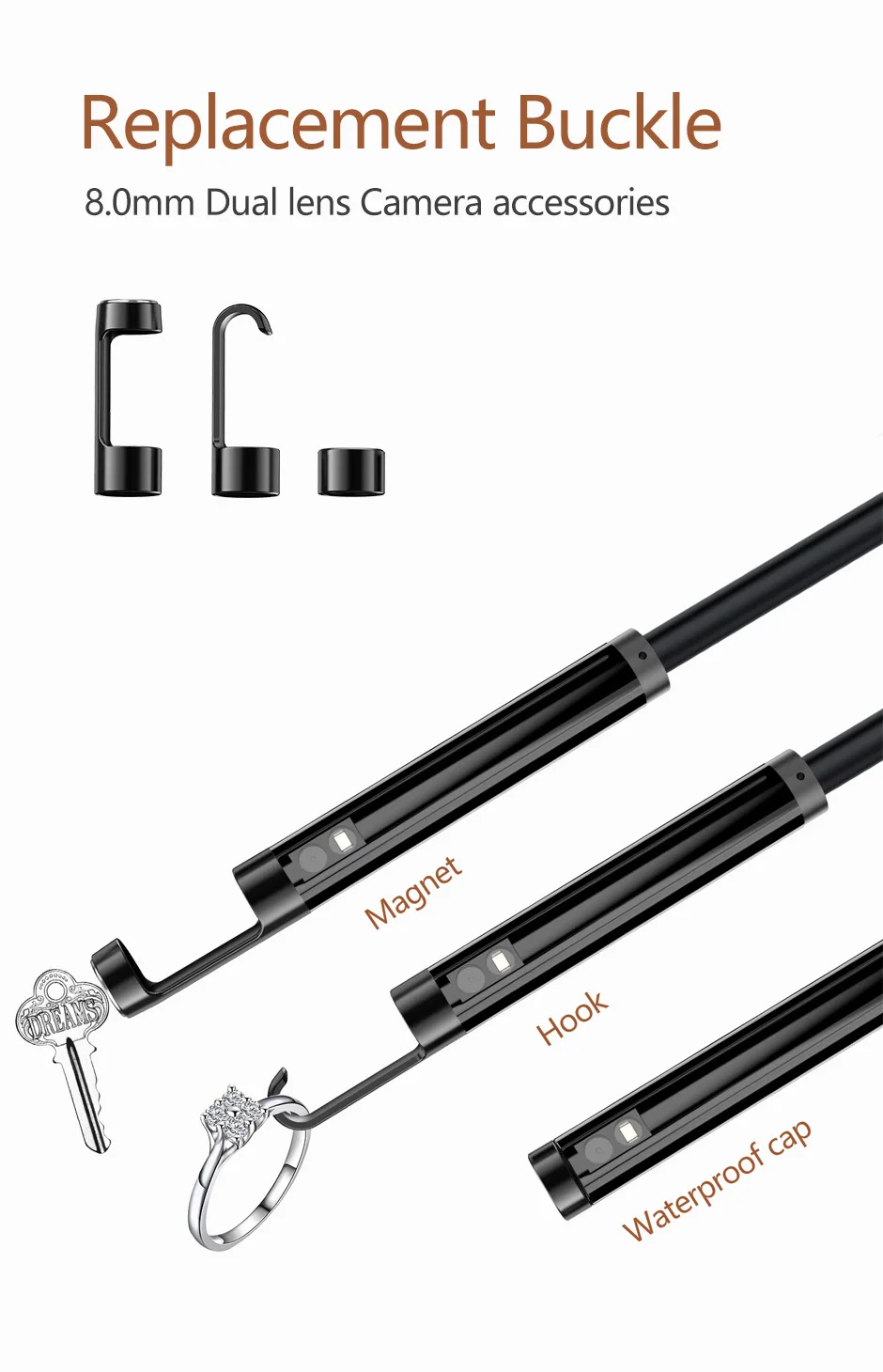 LED light: 8pcs+1pcs for 8MM dual lens camera,6pcs+1pcs for 5.5MM dual lens camera.