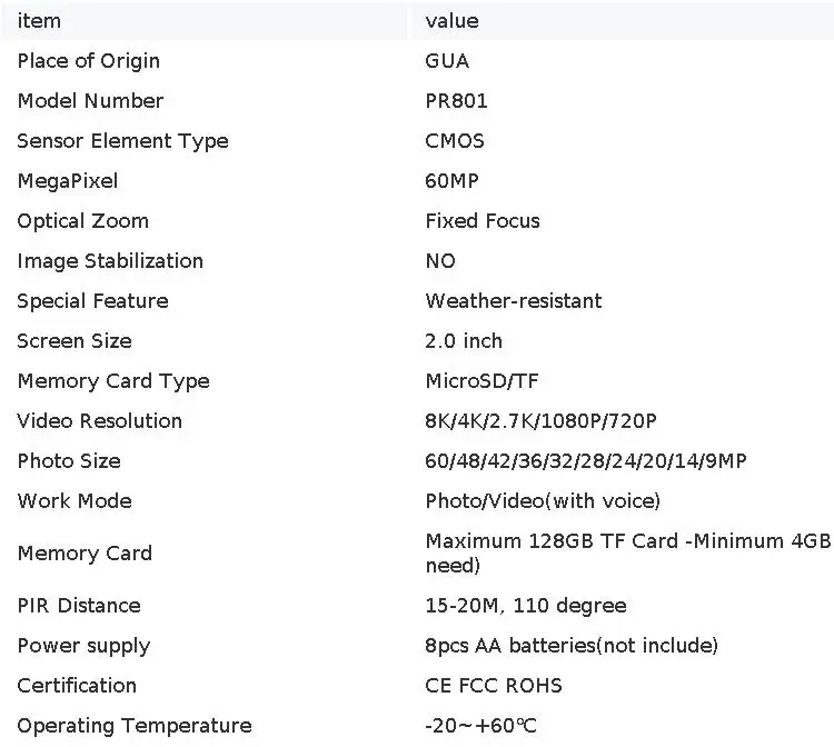 | Model Number | TC801LTE Trail Camera |