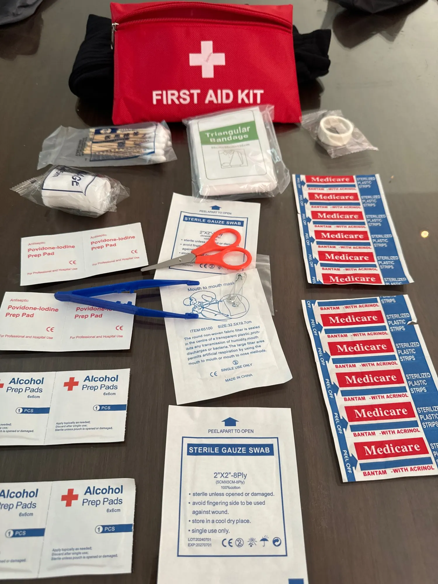First aid Kit quite good, practical and compact, has everything you need to do some spontaneous healing, quite good and practical for the price it costs, I recommend quite the truth.