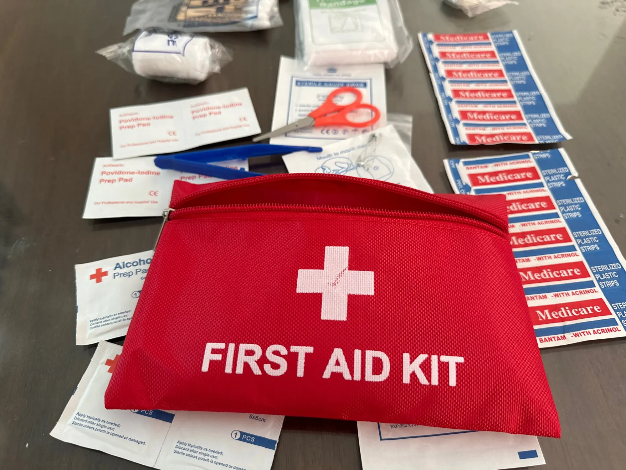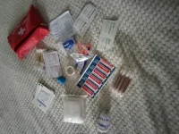 You can put in emergency kits basics, like band-aids, alcohol pad, pills etc.