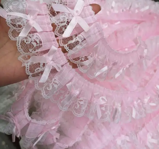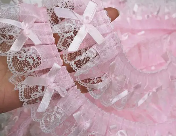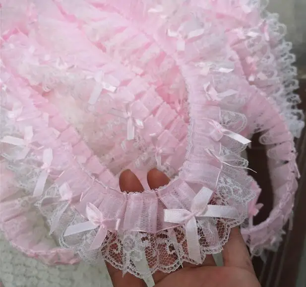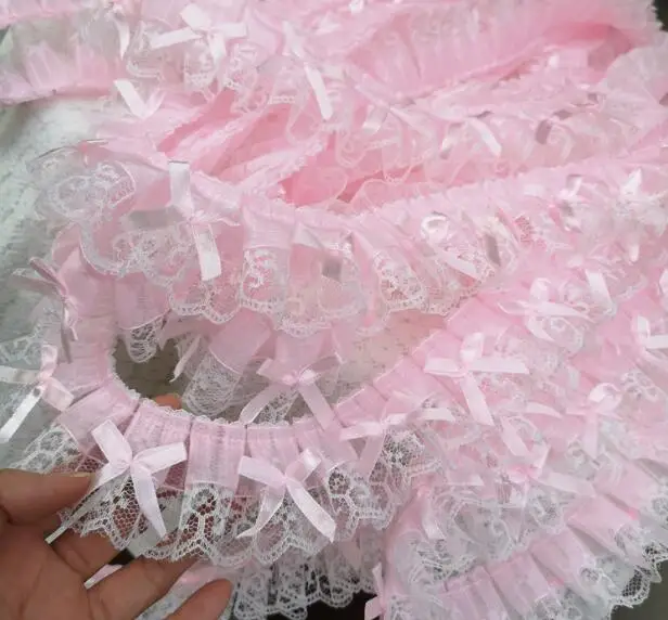 5CM Wide New Pink Embroidery 3D Flower Lace Fabric Trim Ribbon DIY Sewing Applique Collar Fringe Tassel Wedding Guipure Decor