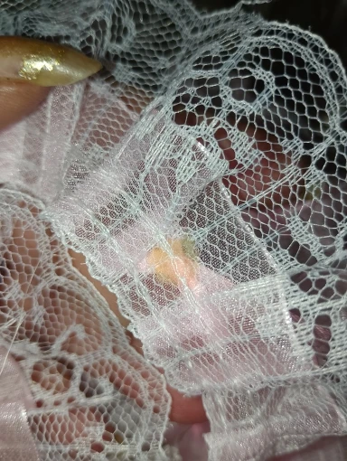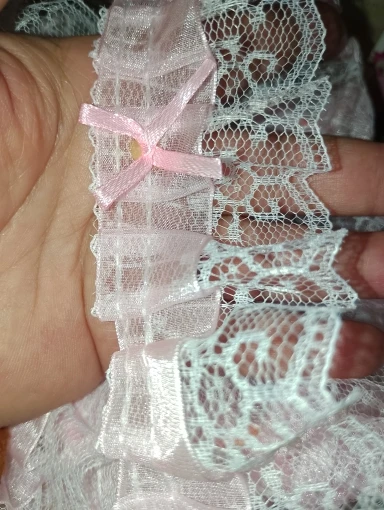 It is a very beautiful lace, the only bad thing is that the ties are glued with a tail, you will have to sew them before putting it on any garment.