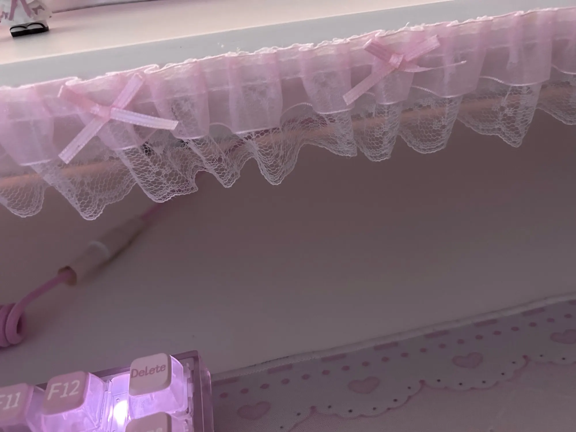 i love this lace so so much i bought 4 of them & it was so muchh. made my mic and desk set up so much cuter🧁🎀 i’m def buying more ! ^_^