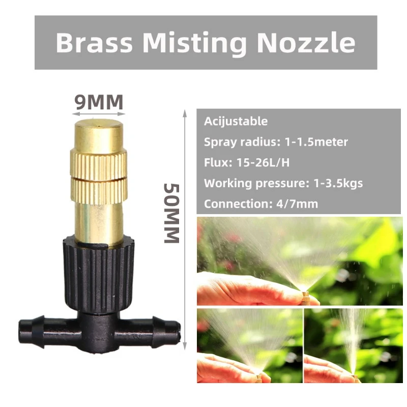 5M-30M Outdoor Misting Cooling System Garden Irrigation Watering 1/4” Brass Atomizer Nozzles 4/7mm Hose for Patio Greenhouse