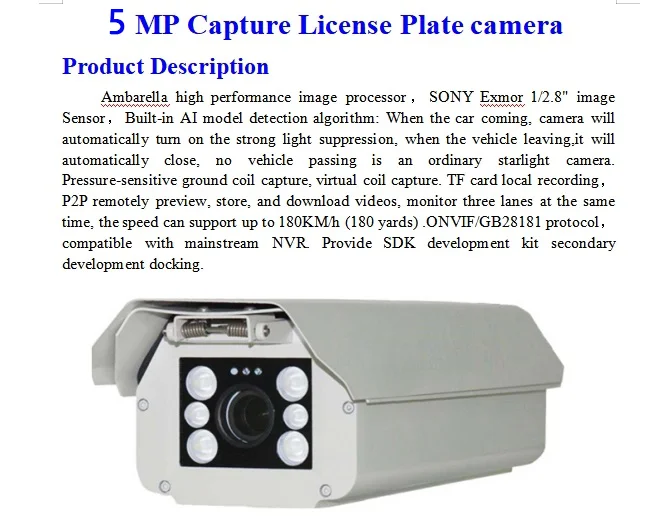 5MP Traffic Road Photo Recognition License Plate View Camera Vehicle Number Network Monitor poe Camera Entrance Exit Electric