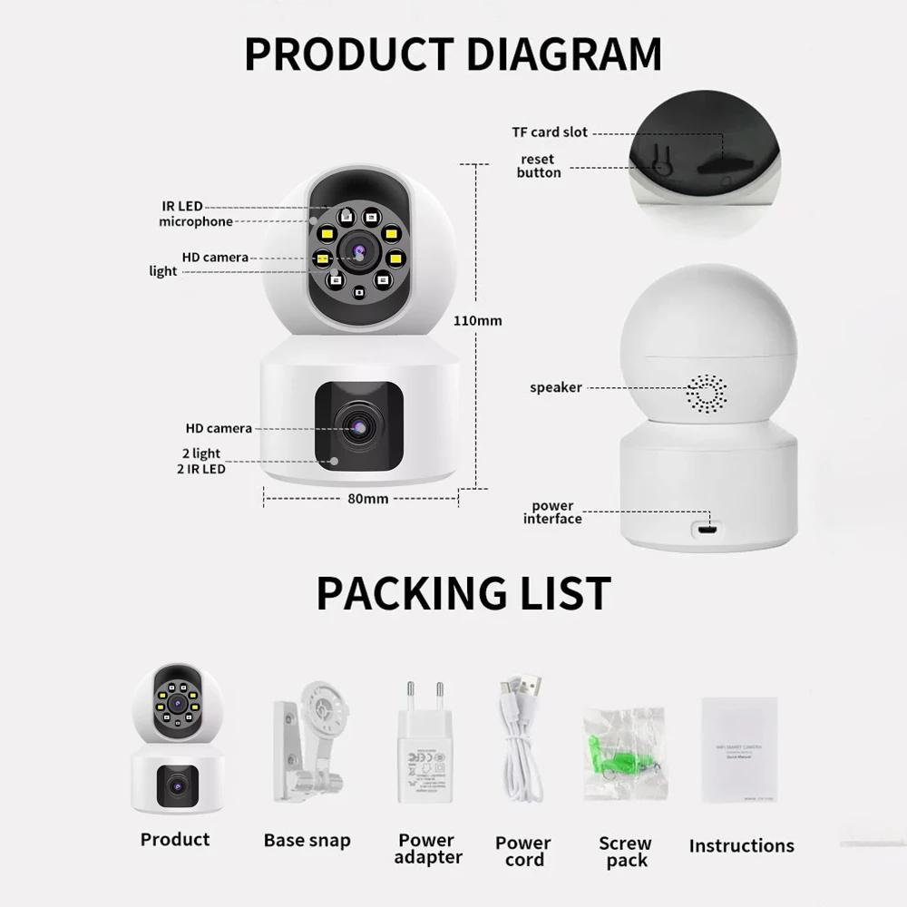Be the first to review “5MP WiFi Camera With Dual Screens Baby Monitor Night Vision1080P Cam Human Body Automatic Tracking Indoor Security IP Camera”