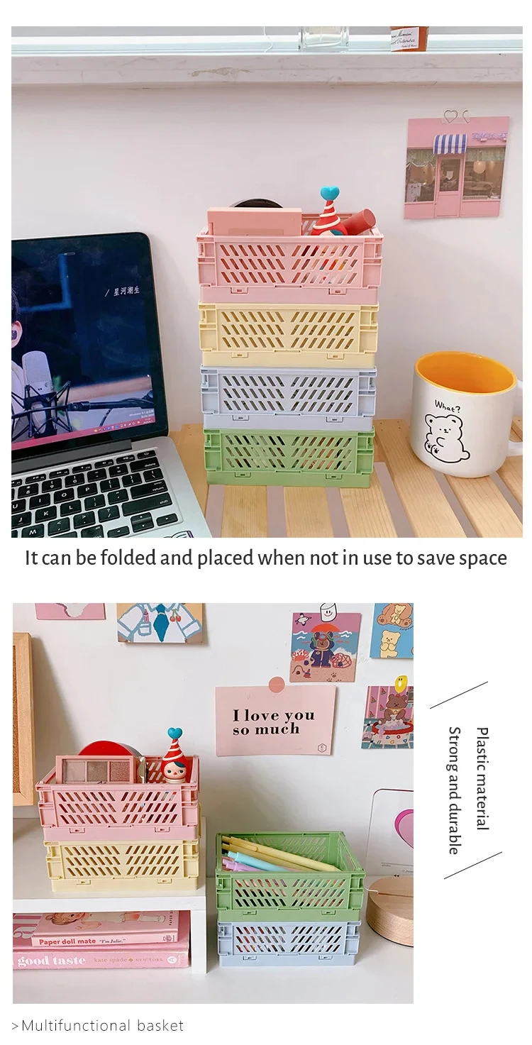 6 Color Organizing Storage Baskets Case Folding Student Desktop Basket Tape Stationery Plastic Foldable Container Storage Box