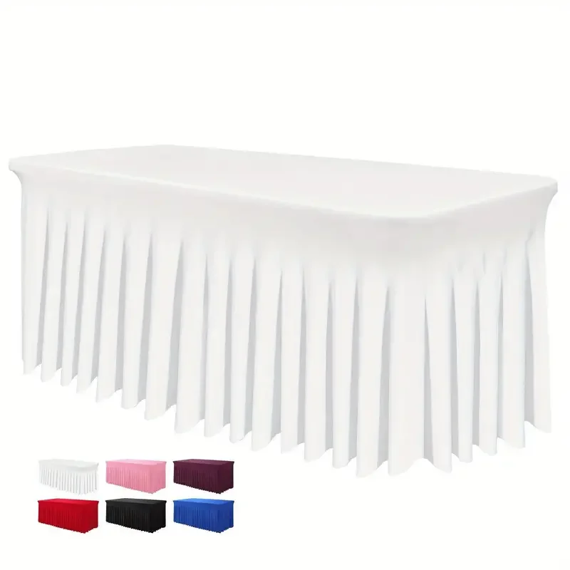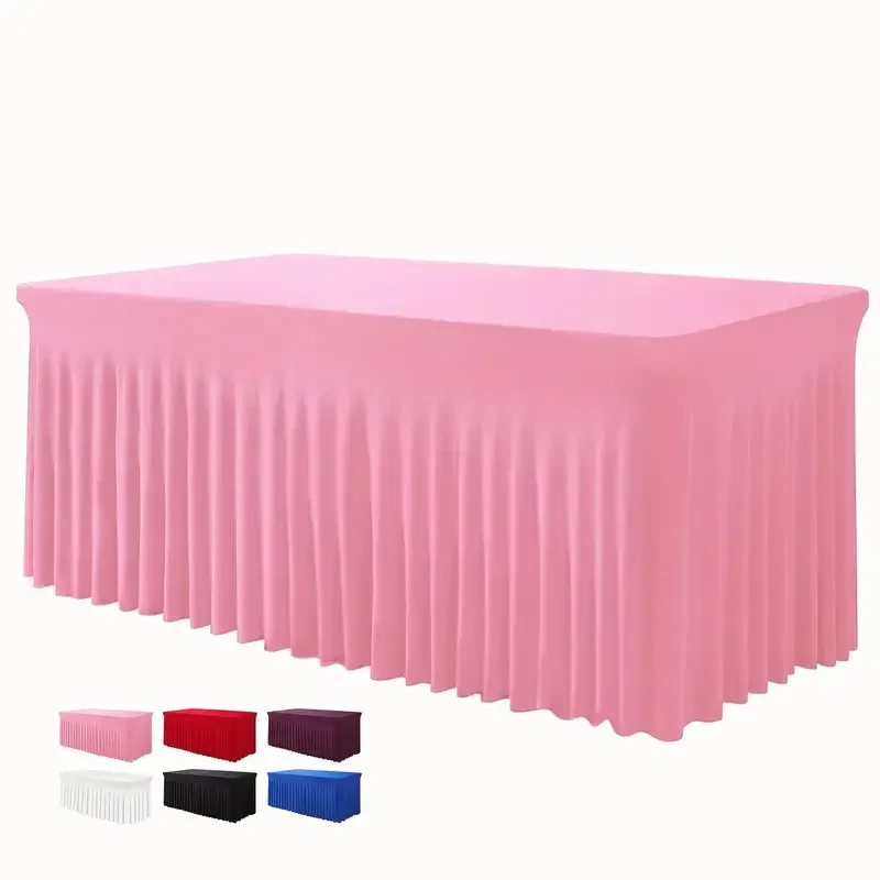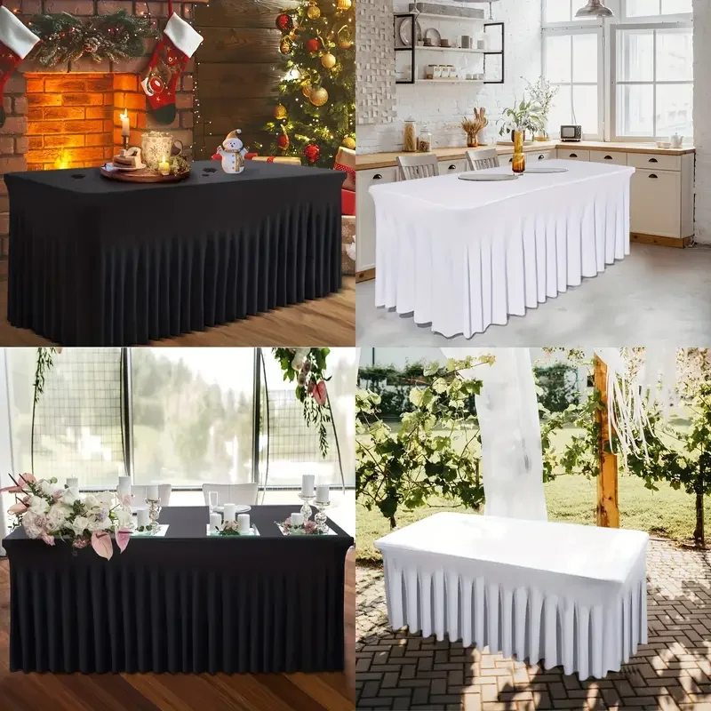 6ft, Rectangle Table Skirts, Polyester Fitted Table Covers, Black Table Cloth For 6 Ft Table With Skirt,Spandex Table Cover