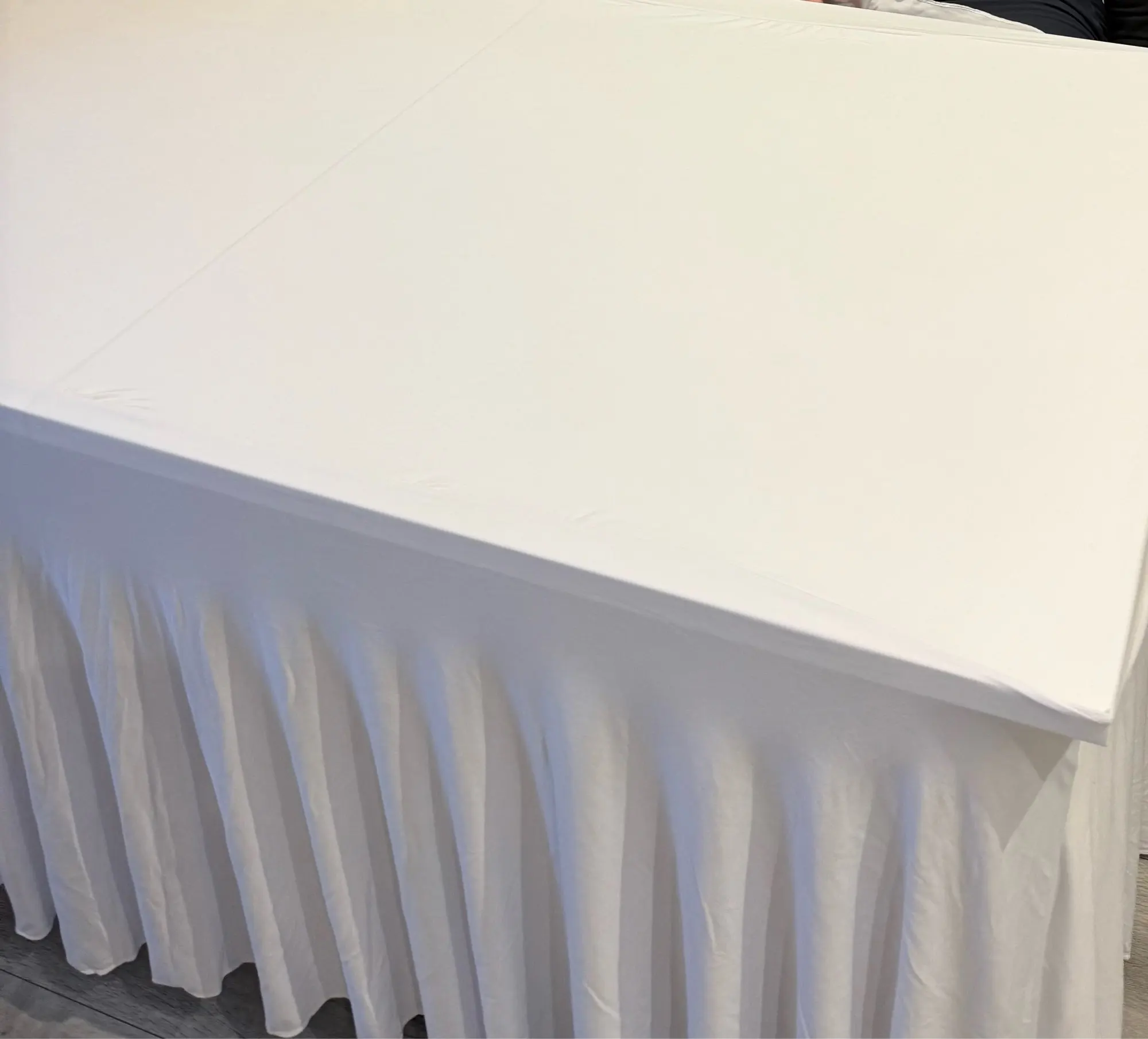 Crafted from premium polyester, this table skirt offers durability and longevity, ensuring it remains in great condition for years to come.