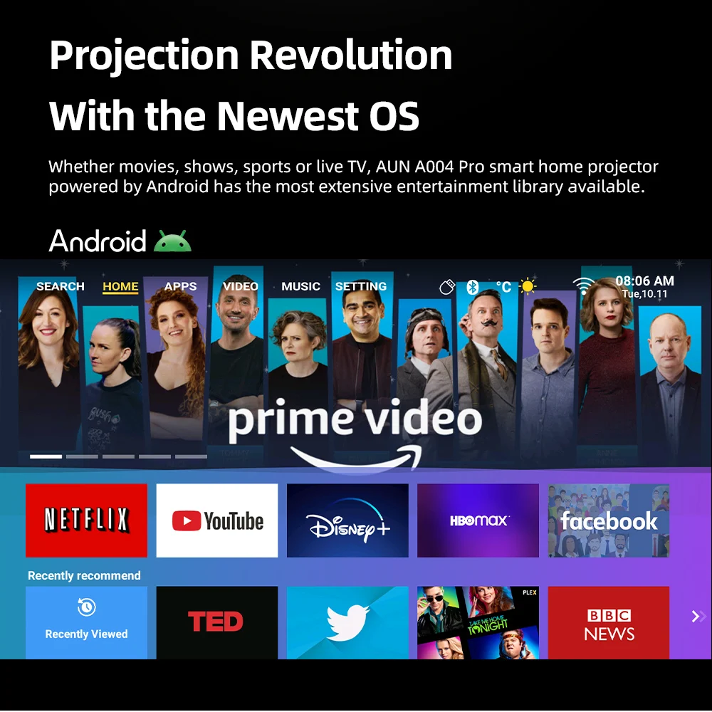AUN A004 Pro Projector Android TV Portable Full HD Home Cinema 4K Movie Decode 1080P VideoProjector Electric Focus MINI Theater