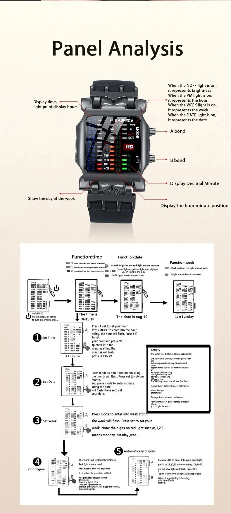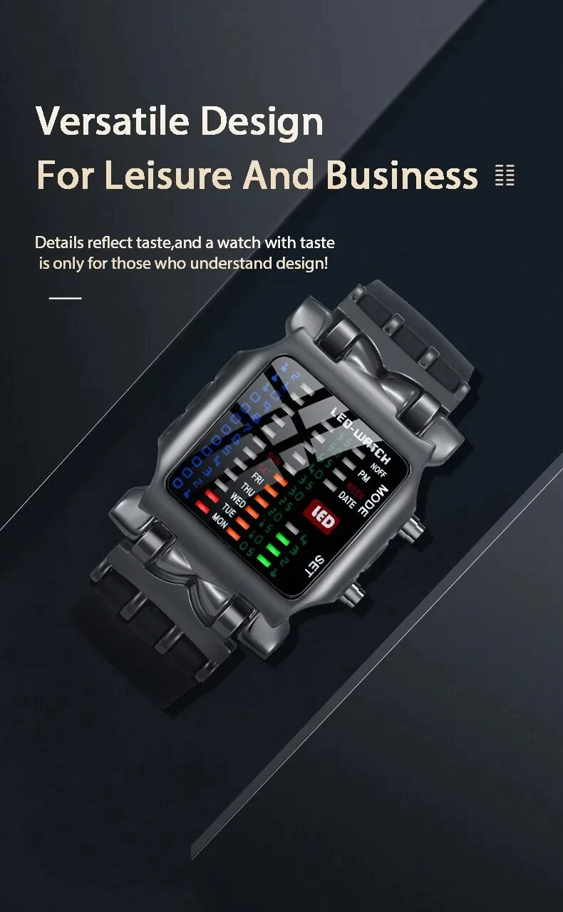 Binary Led Watch Creative Waterproof Business Electronic Watch Mens Trend Luminous Gift Sports Couple Date Time Display Watch