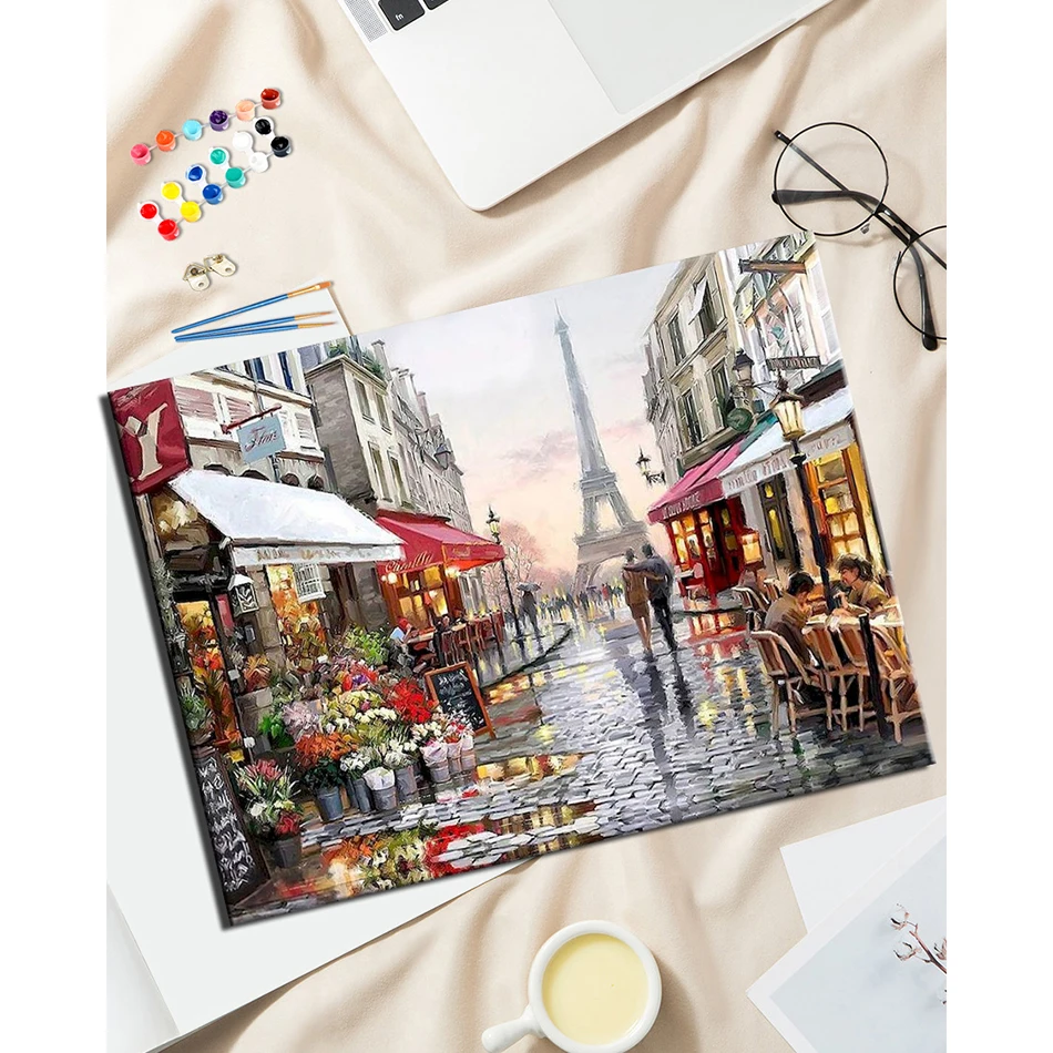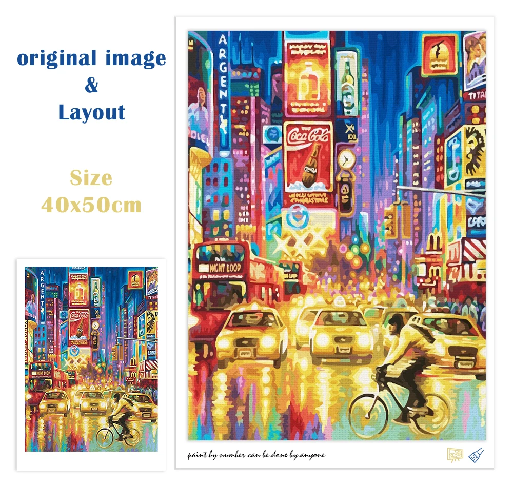CHENISTORY City Painting By Numbers For Adults DIY Kits HandPainted On Canvas With Framed Oil Picture Drawing Coloring By Number