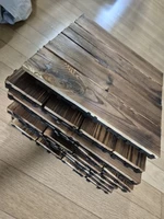 The Surface Color Of The Wooden Board Is Made By Charcoal Baking Process. There Will Be a Layer Of Black Carbon Ash On The Surface Of The Product When Received, Which Can Be Gently Wiped Off With a Damp Towel Without Affecting The Product. Thank You For Your Understanding