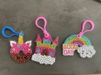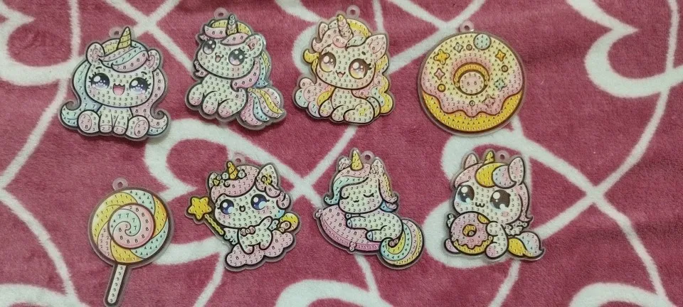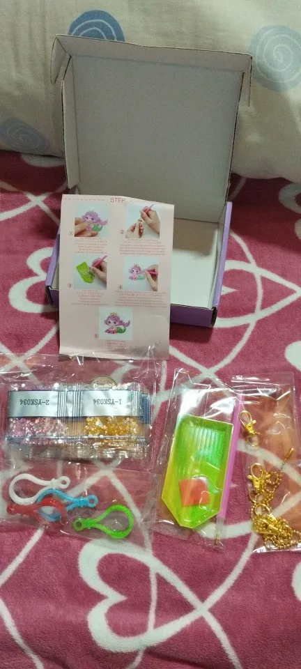 Arrived quickly and well. The keychains have only one diamond face, but they are very nice. It is a complete, simple and beautiful kit to start the smallest of the house in this craft.