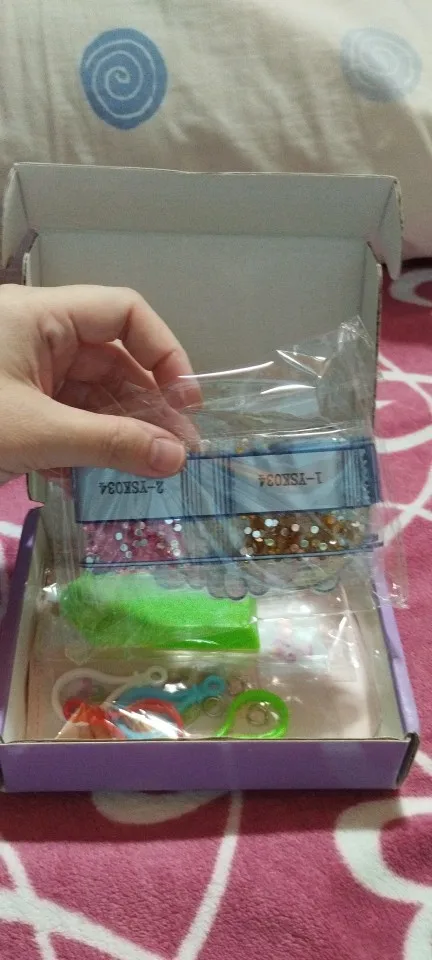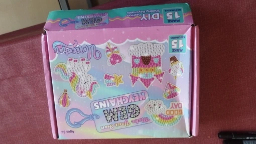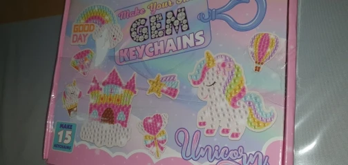 I’m delighted. It is beautiful, my daughter is very entertained by making the key chains, they are beautiful once finished. Its price is three times less than other pages. Very fast delivery.