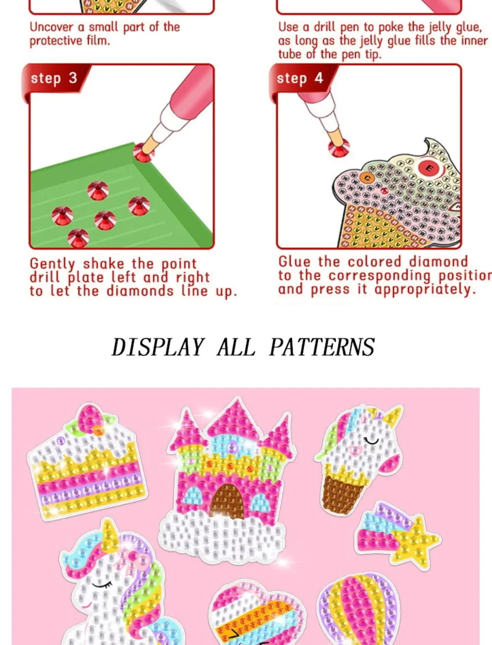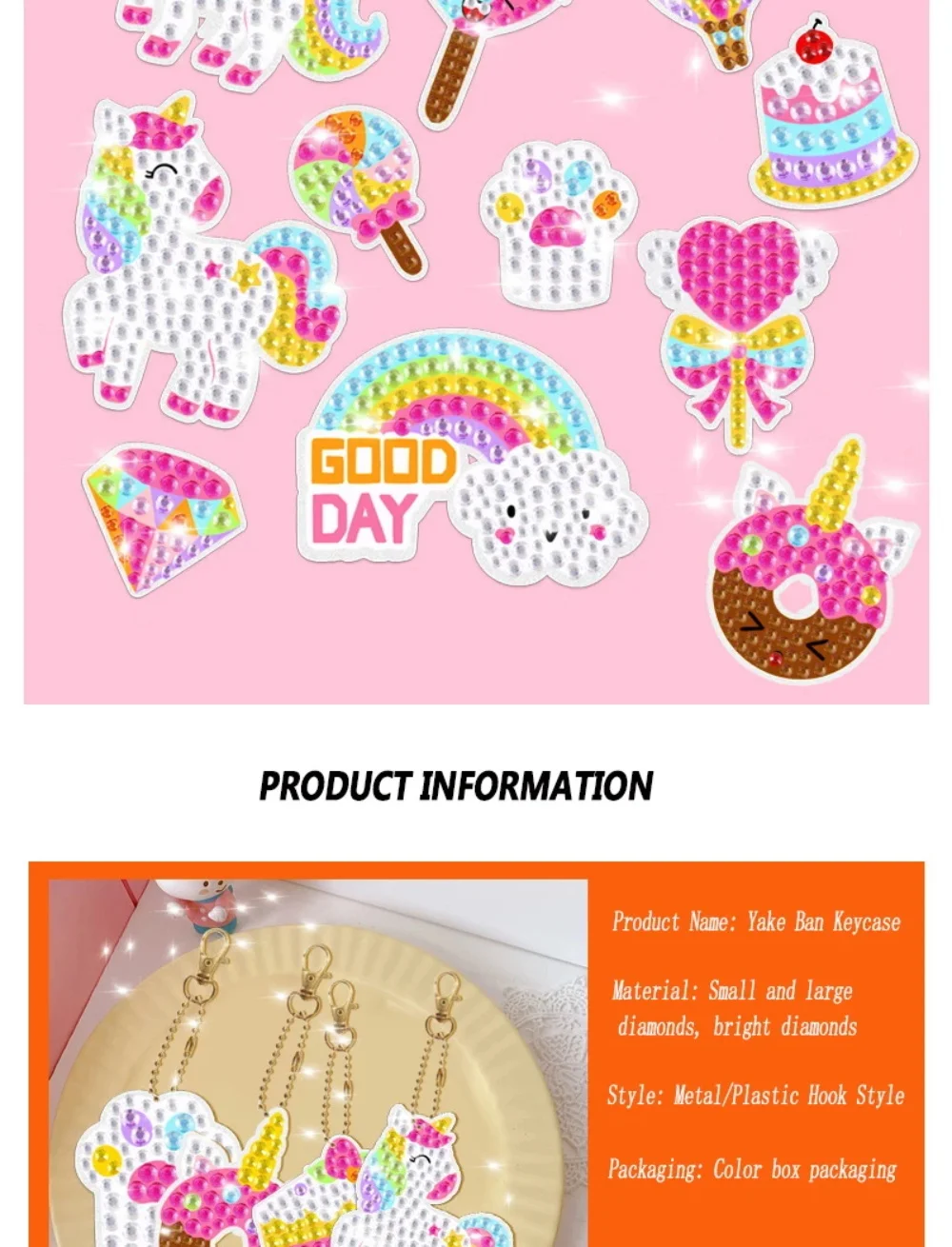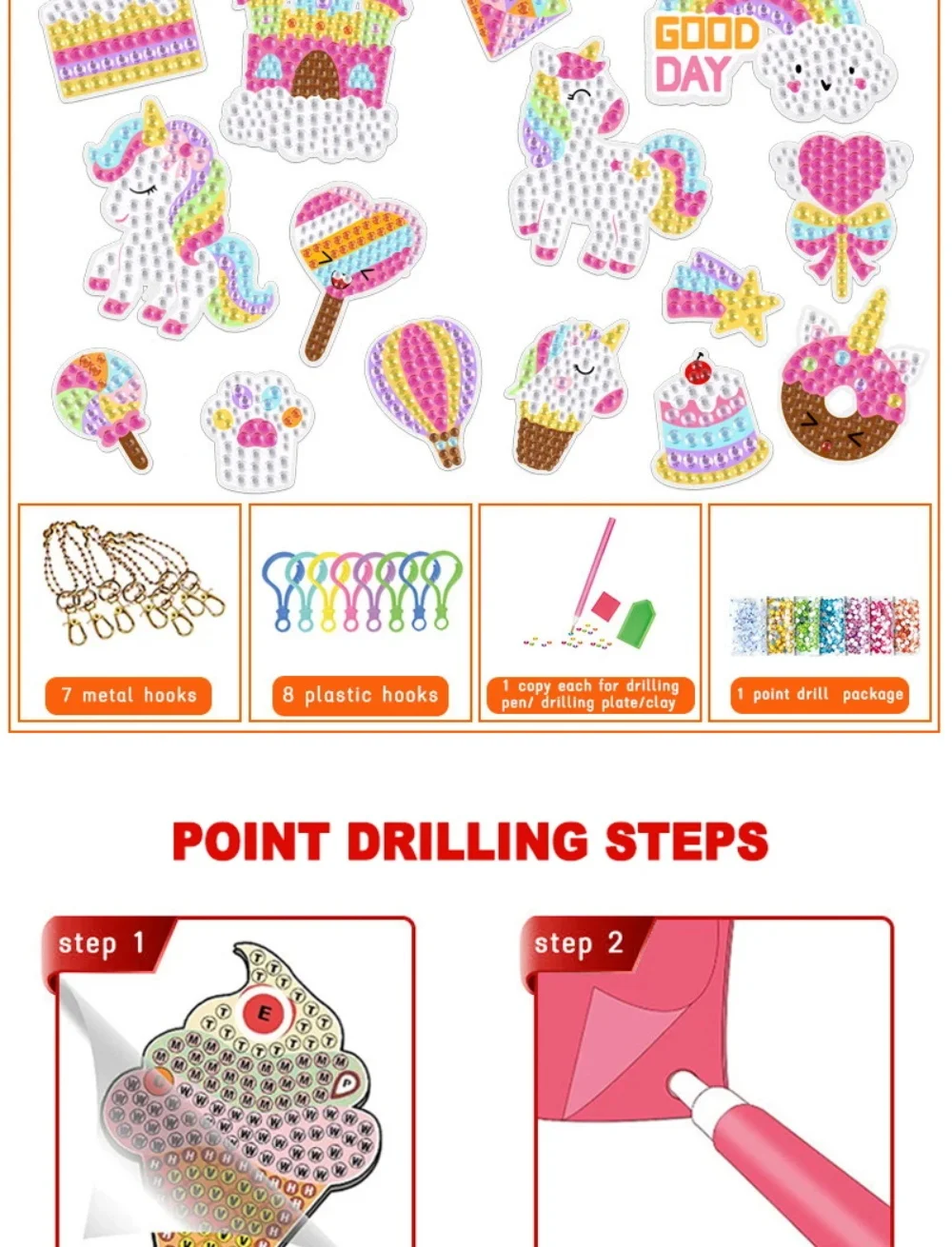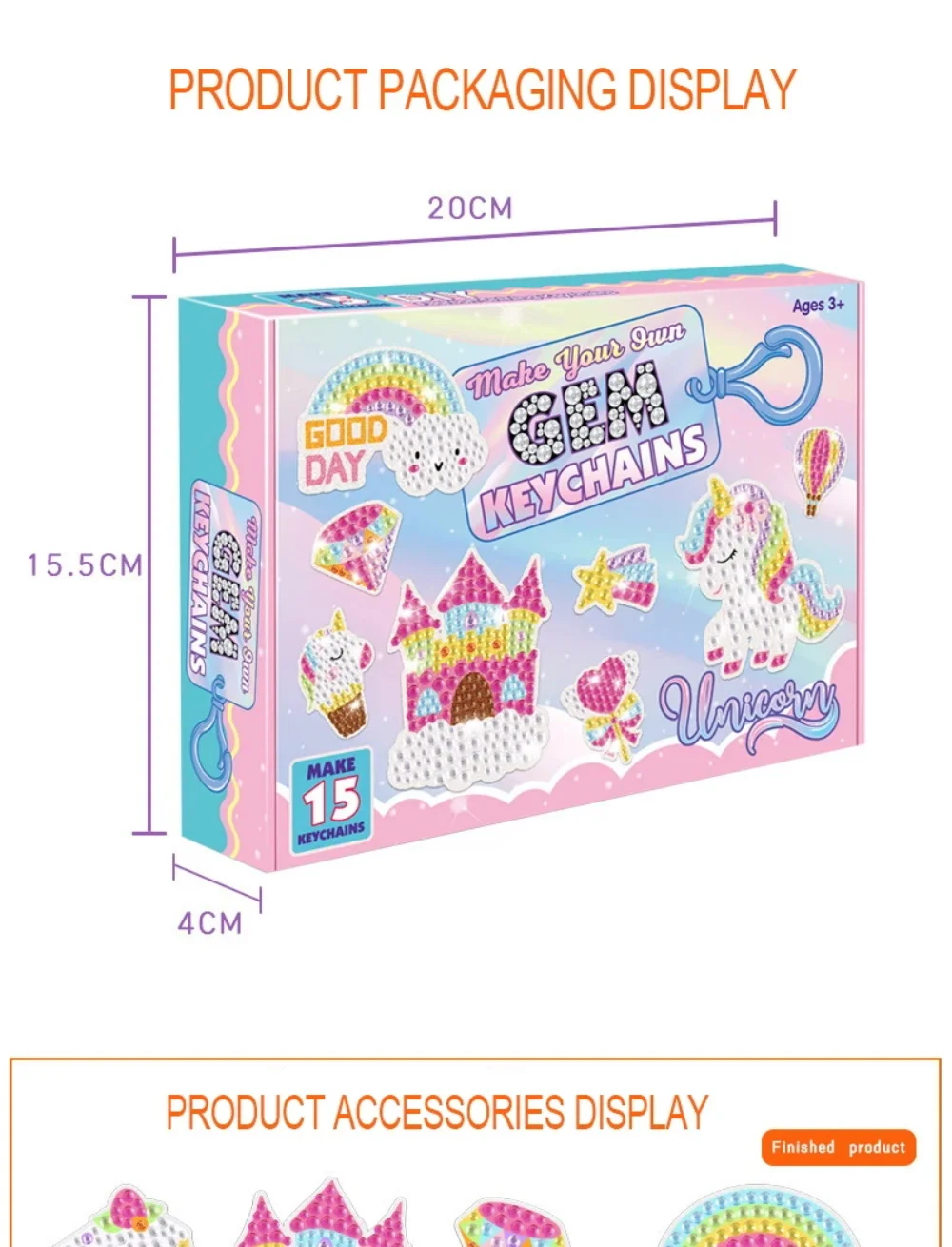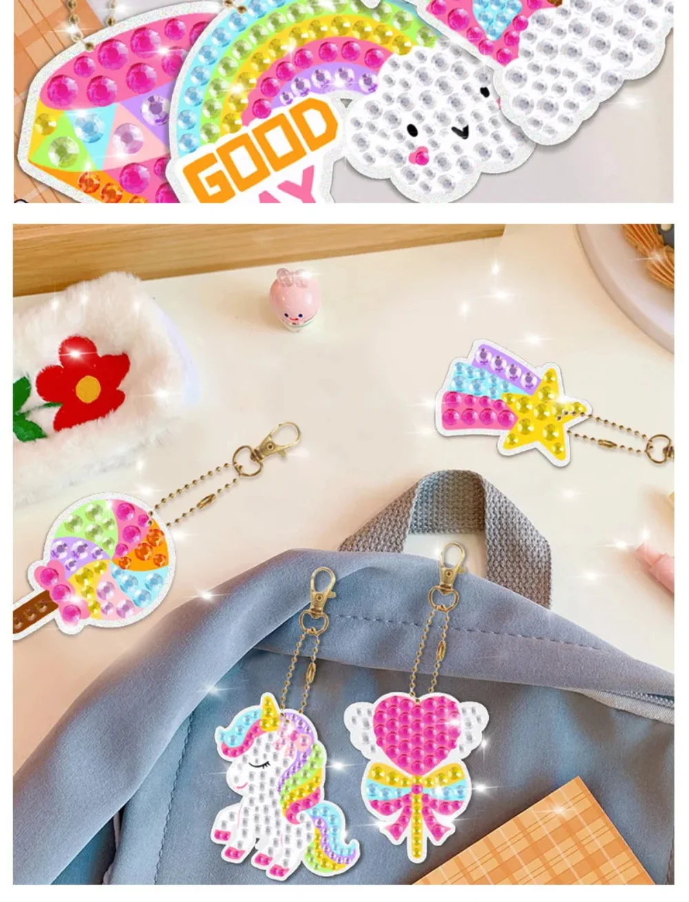 Diamond Painting Keychain Diamond Acrylic Pendant 5D DIY Painting Toy Cartoon Unicorn Magic Gemstone Rainbow Charms