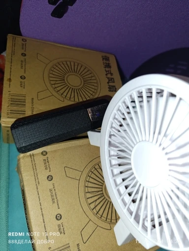 Lovely fan. Works silently from any power source (network, computer, Power Bank)