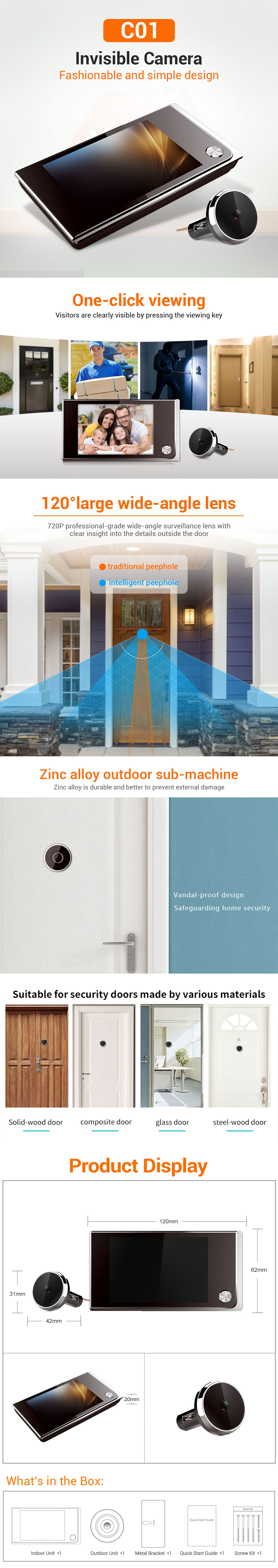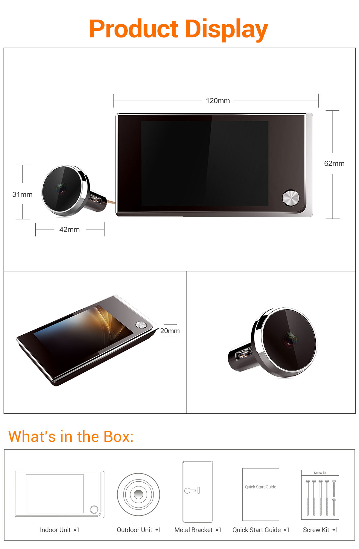 Escam C01 3.5 inch Digital LCD 120 Degree Peephole Viewer photo visual monitoring electronic cat eye camera doorbell camera