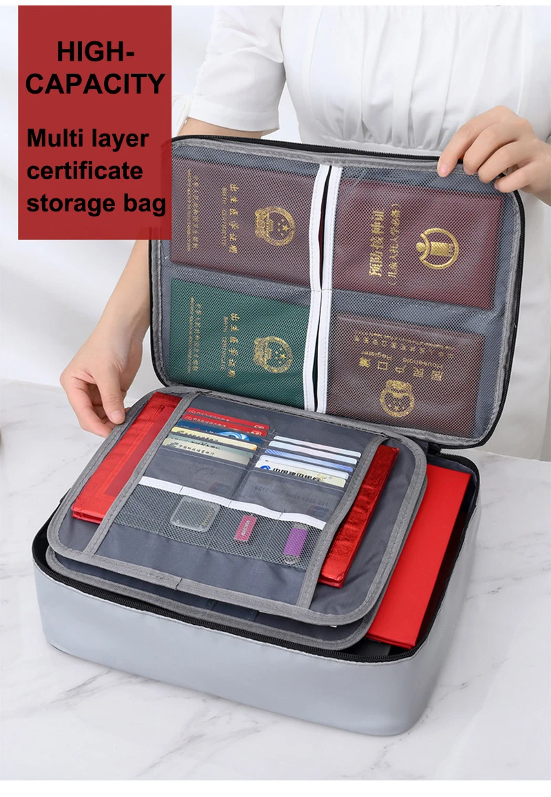 Fireproof Document Password Bag Travel Waterproof File Money Storage Safe Papers Zipper Safety Organizer Multi-Layer Card Case