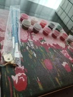 Easy to paint picture, the colors are equal to those of the photo, beautiful. Comes with wooden frame.