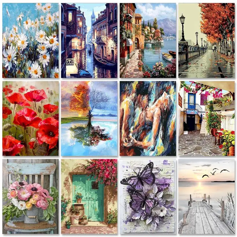 GATYZTORY Frame Town Landscape DIY Painting By Numbers Kits Drawing Acrylic Picture Modern Wall Art Home Decor 40x50cm Arts