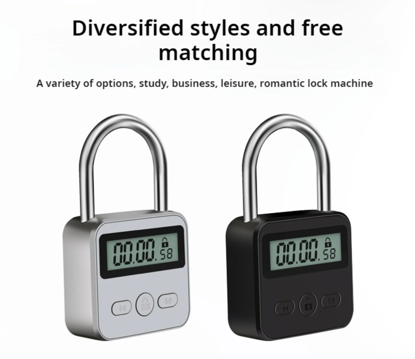 HEE RAK Timer Padlock LCD HD Add Backlight Zinc Alloy 99 Hours Max Timing Super Long Standby Anti-addiction Electronic Lock