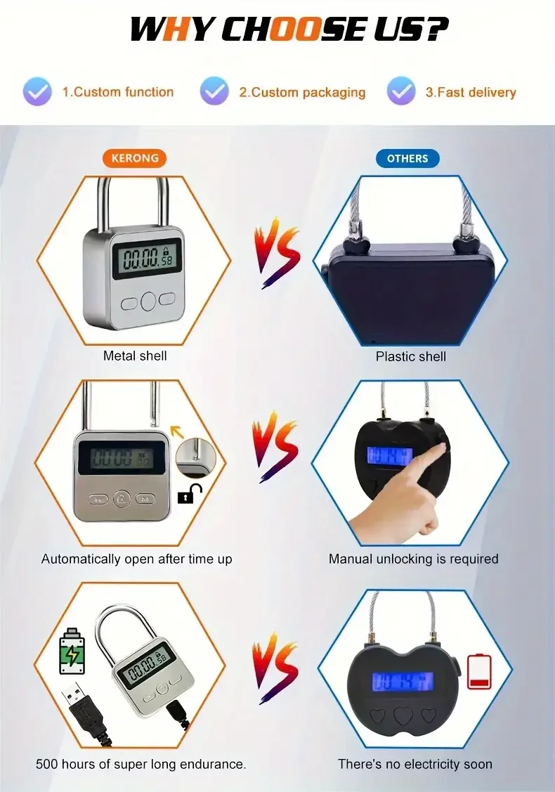 ✨Setting function: The lock body has a small display and button, which can increase the hours and minutes, up to 99 hours and 59 minutes, and cannot be opened if the time is less than 99 hours