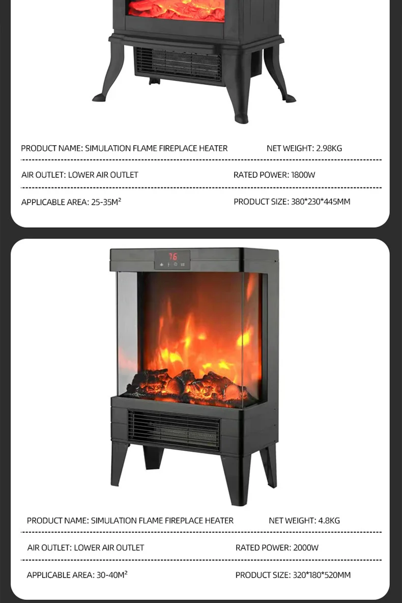 Household 3D Flame Electric Heater Fireplace Indoor Smokeless Electric Heating Fan Calentador Electrico Pared