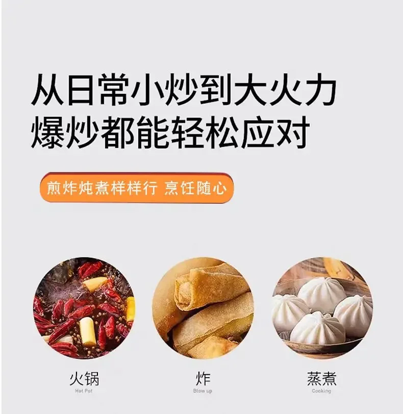 | Function | Soup Stewing, Stir-fly, Steam & Boil, Porridge Cooking, Stire-fry, Milk Stewing, Water Boiling, Fry, Temperature Adjustment |
